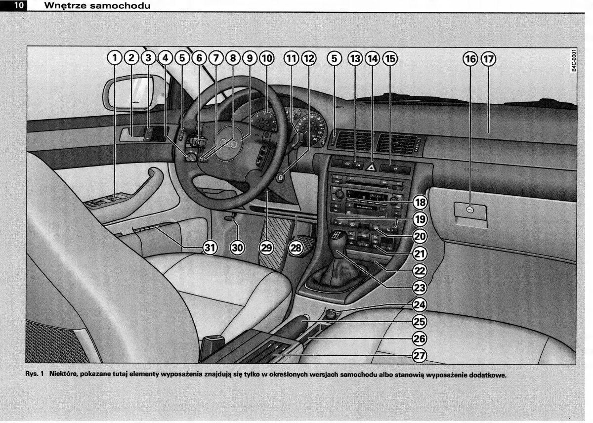 Руководство для владельца Audi содержит все версии оборудования и полезную информацию о том, как эффективно и безопасно использовать автомобиль, например: - указатели поворота, контрольные лампы, открывание и закрывание - освещение и обзорность, сиденья, отсеки для хранения вещей, отопление, вентиляция, кондиционер. - советы по вождению, эксплуатации, обслуживанию автомобиля - уровни жидкостей, проверка и доливка, аварийные операции, замена колес, предохранителей, замена лампочек - технические данные... и многое другое, что дает путешественникам ощущение безопасности и комфорта.Польское законодательство обязывает продавца приложить к . Руководство пользователя автомобиля новое, на польском языке.