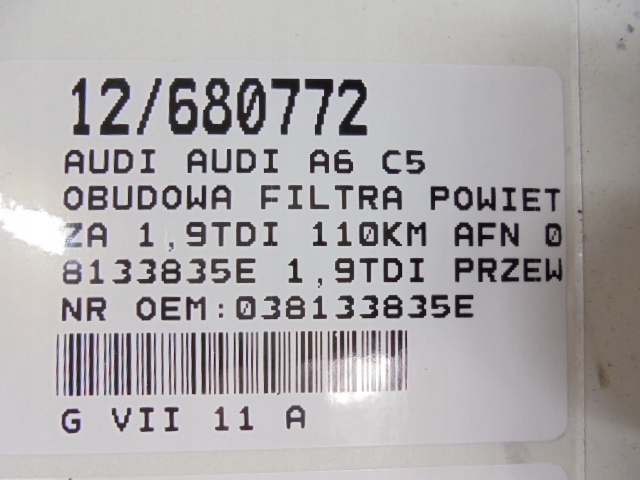Audi A6 C5 Air Filter Counting 1,9TDI 110 км AFN 038133835E 8D0129615K