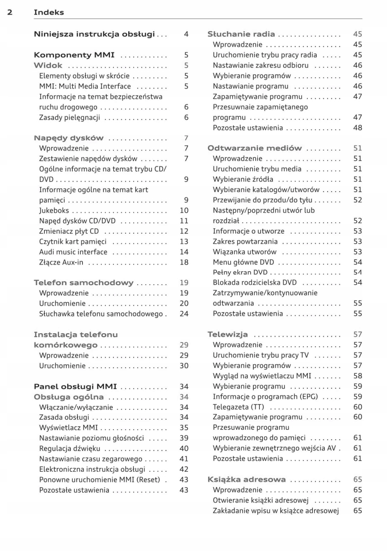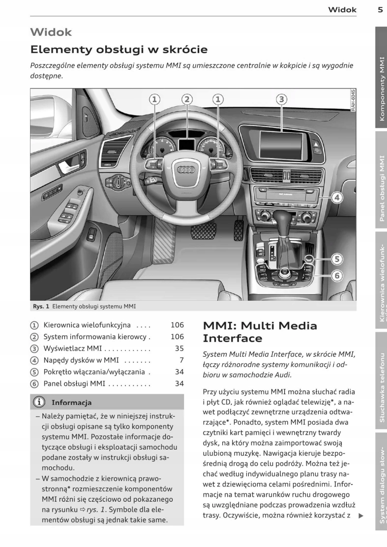 Содержит описание магнитолы, навигации, Bluetooth, CD, многофункционального руля, телефона и многих других интересных возможностей MMI