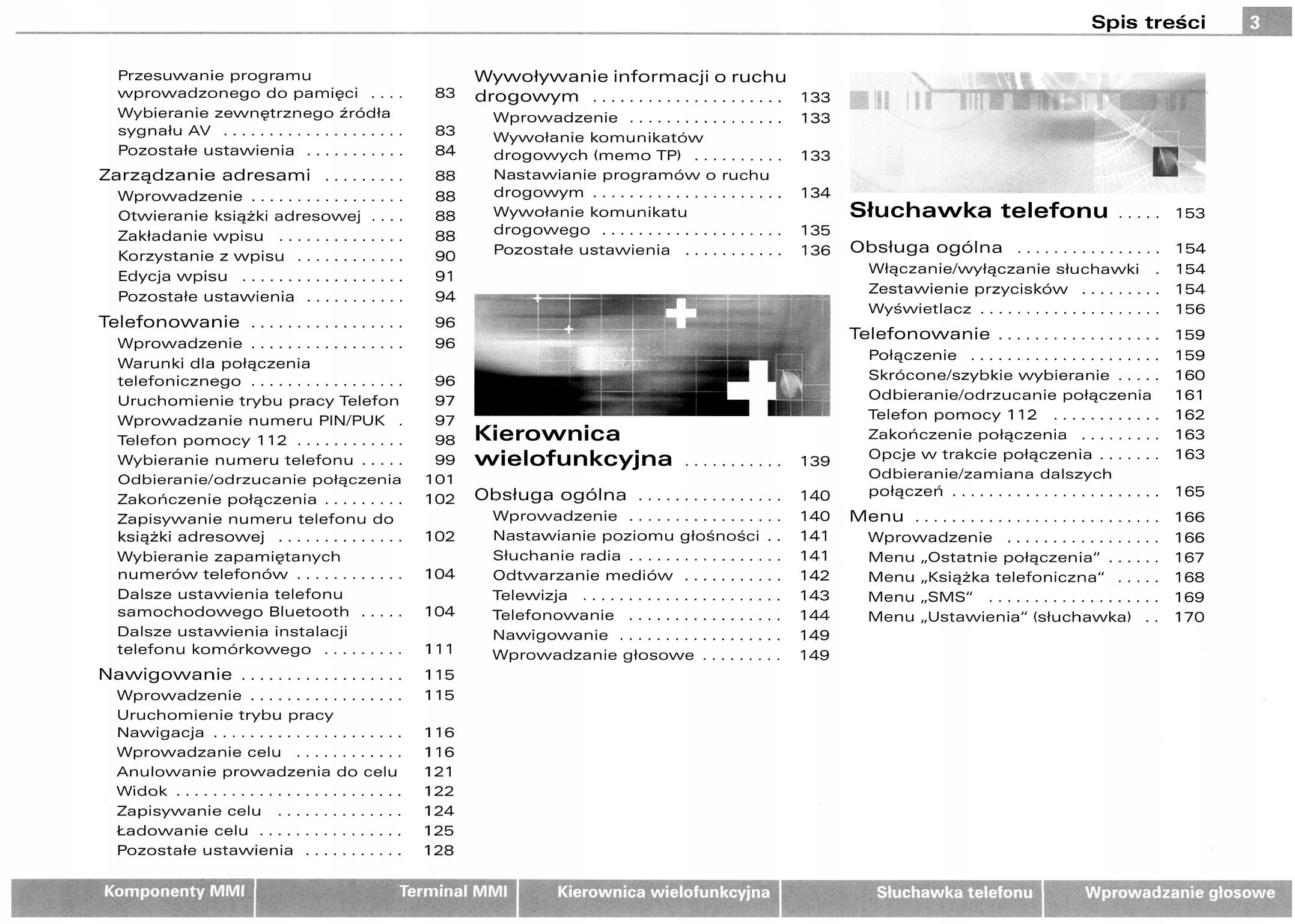Содержит описание магнитолы, навигации, Bluetooth, CD, многофункционального руля, телефона и многих других интересных возможностей MMI