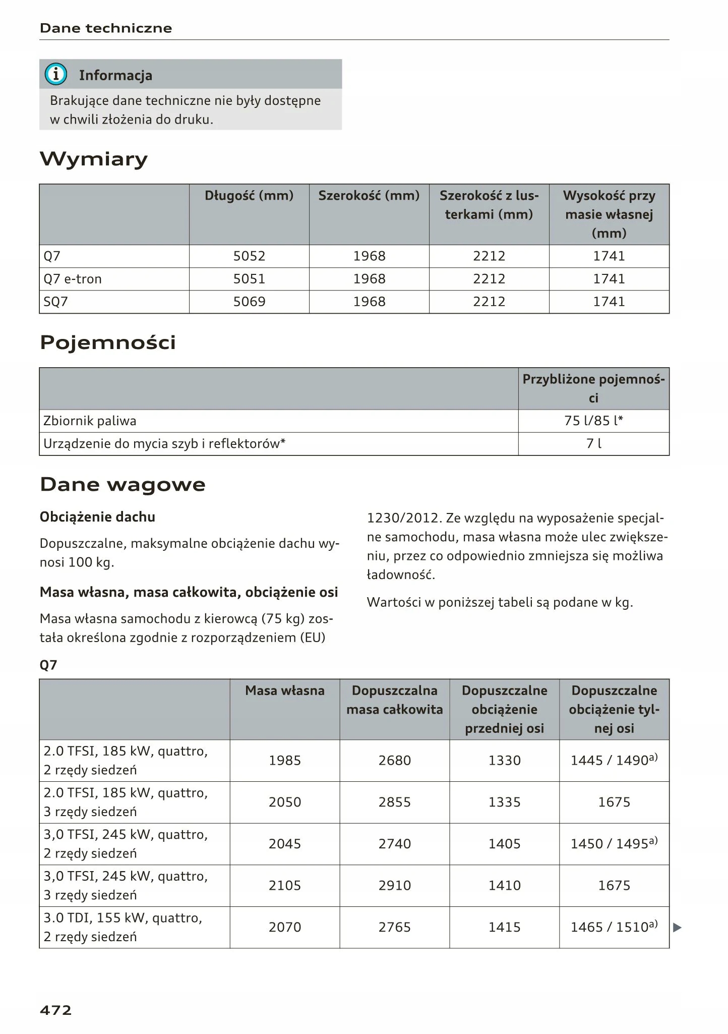 Руководство пользователя Audi Модель Ауди Q7 2015 года. Q7, Q7 e-tron, SQ7 В инструкции также содержится описание магнитолы, ТВ и навигации. В данном руководстве описаны следующие двигатели: 2.0 бензин, 3.0 кватро дизель 2.0, 3.0, 4.0 tdi quattro, Состояние - новый Тип - книга Страниц - 490 Польский язык Издание - 2016 г. Обложка - цвет Центр - черно-белый Бумага - мел матовая А5 149х210