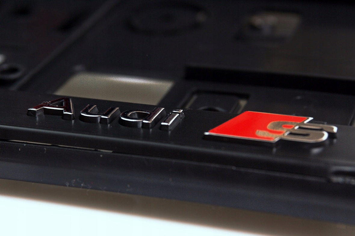 AUDI S-LINE РАМКА 3D ЛОГОТИП КРАСНЫЙ + ХРОМ SLINE КРАСИВАЯ ГРАВИРОВКА 2 шт.