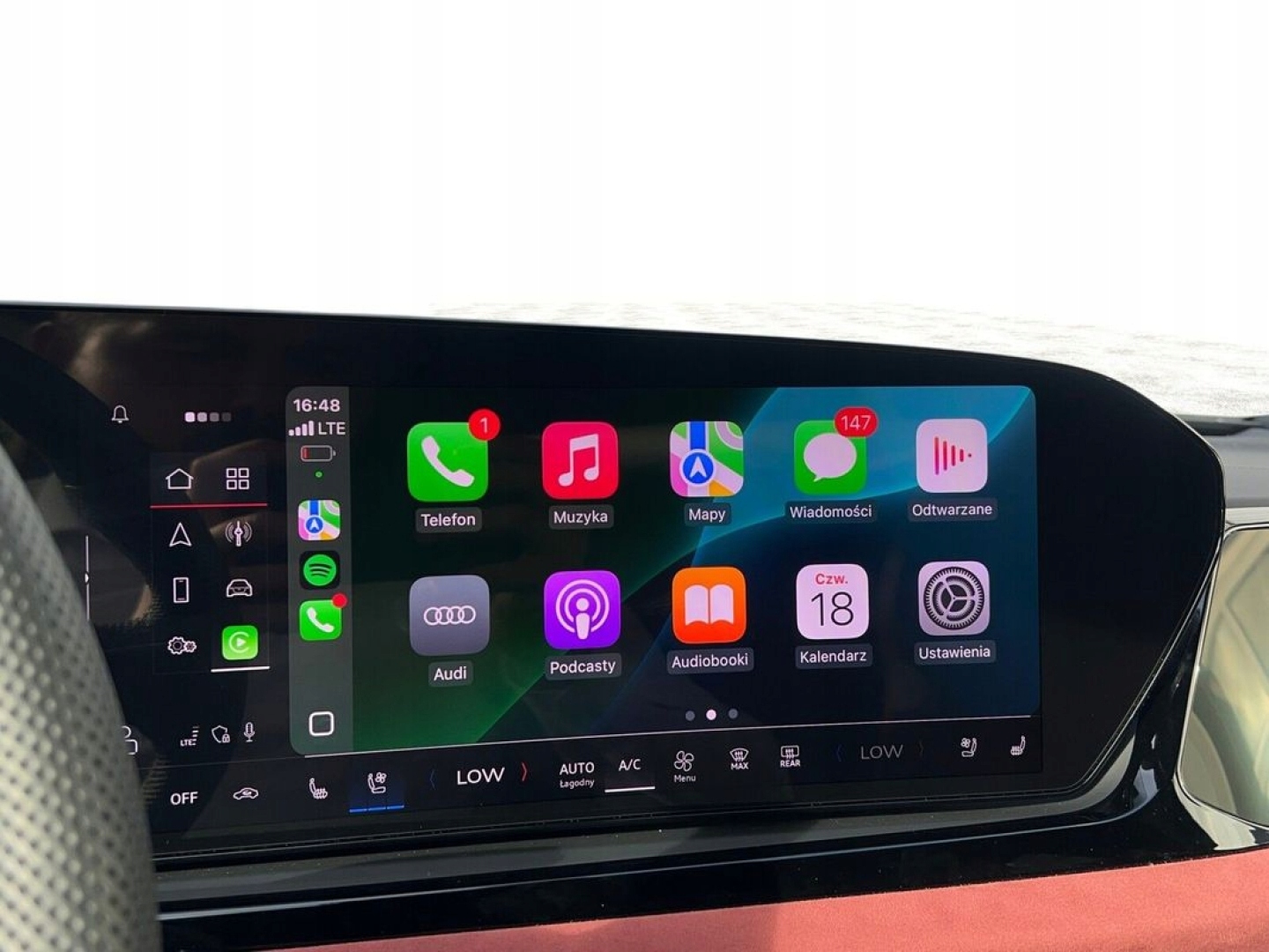 Рулевое колесо в хромированной оптике, эмблемах, боковые сегменты перфорированного кожаного руля и контрастный шов