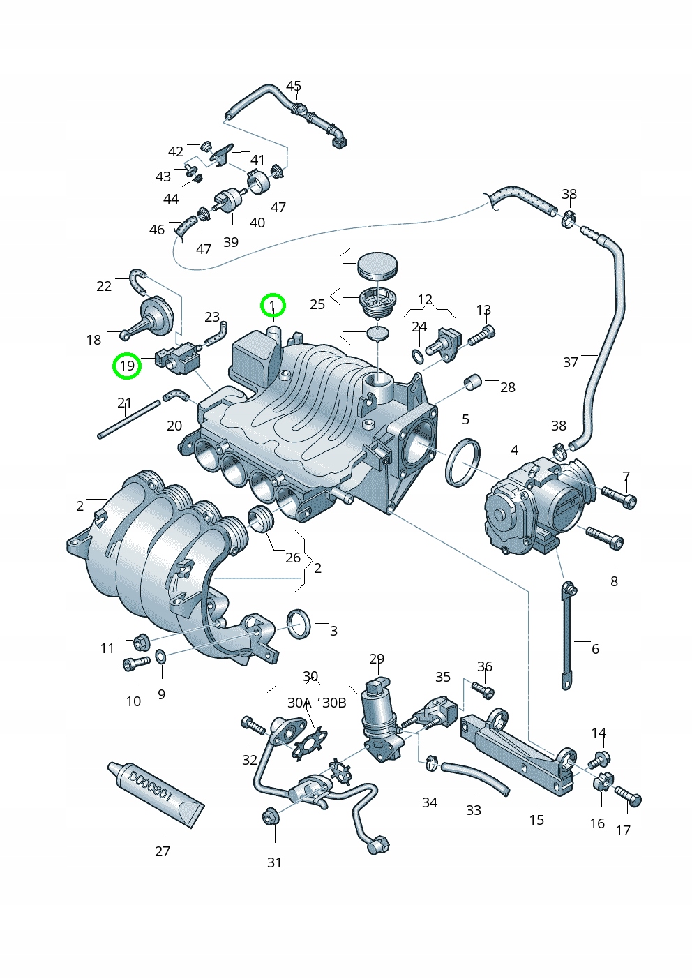 Audi Skoda VW 1,6 MPI 8V Верхний всасывающий коллекционер 0E 06A133203EN