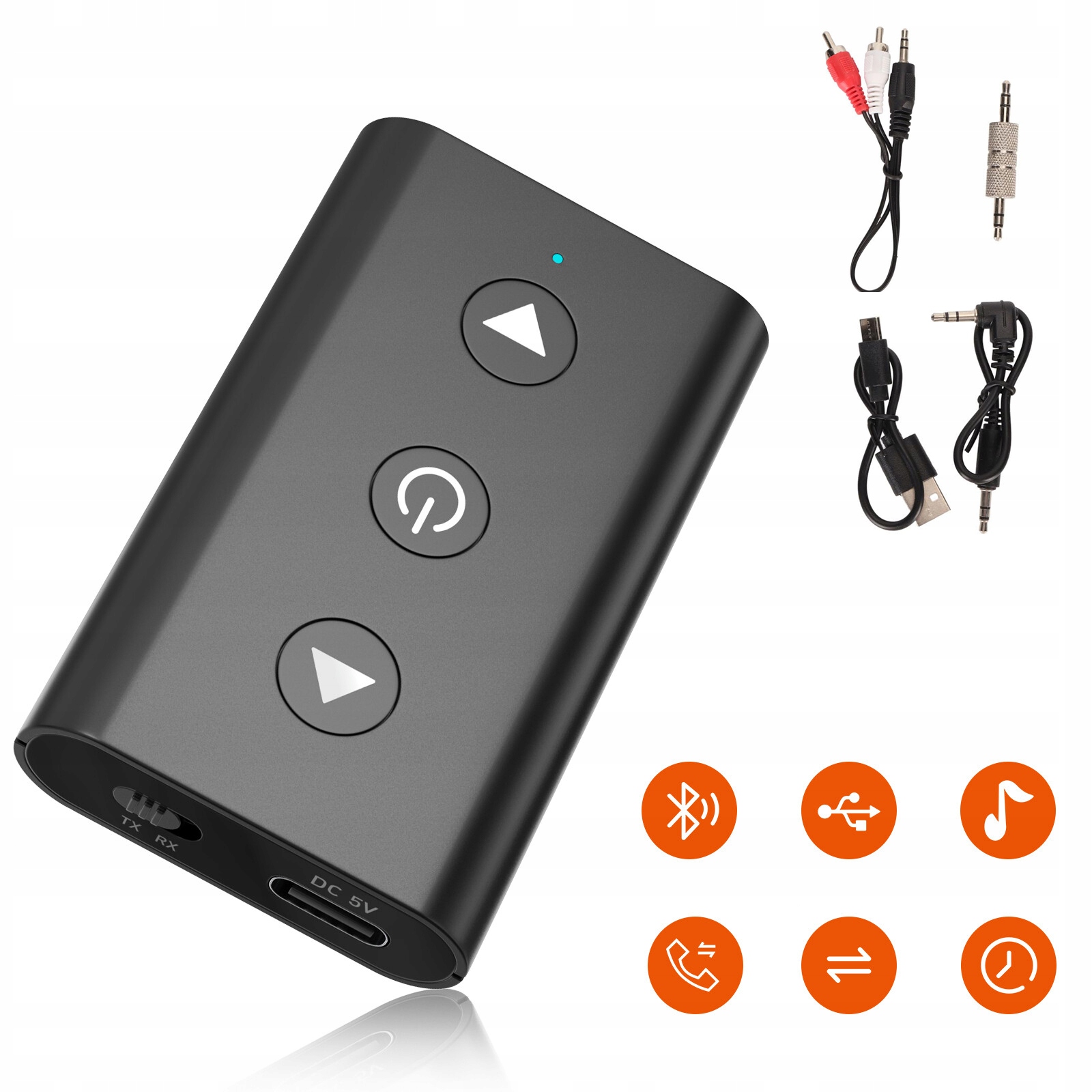 [Bluetooth-передатчик и приемник 2-в-1]Адаптер Bluetooth можно переключать между режимами передачи (TX) и приема (RX). В режиме TX аудиопередатчик Bluetooth подключается к устройству, не поддерживающему Bluetooth, например телевизору или ноутбуку, через аудиокабель AUX/RCA диаметром 3,5 мм и передает звук на гарнитуру или динамик Bluetooth. В режиме RX подключите проводные наушники, автомобильные динамики или проводные стереодинамики, чтобы получать звук со смартфона через Bluetooth. Радиус действия беспроводной связи составляет более 10 см.