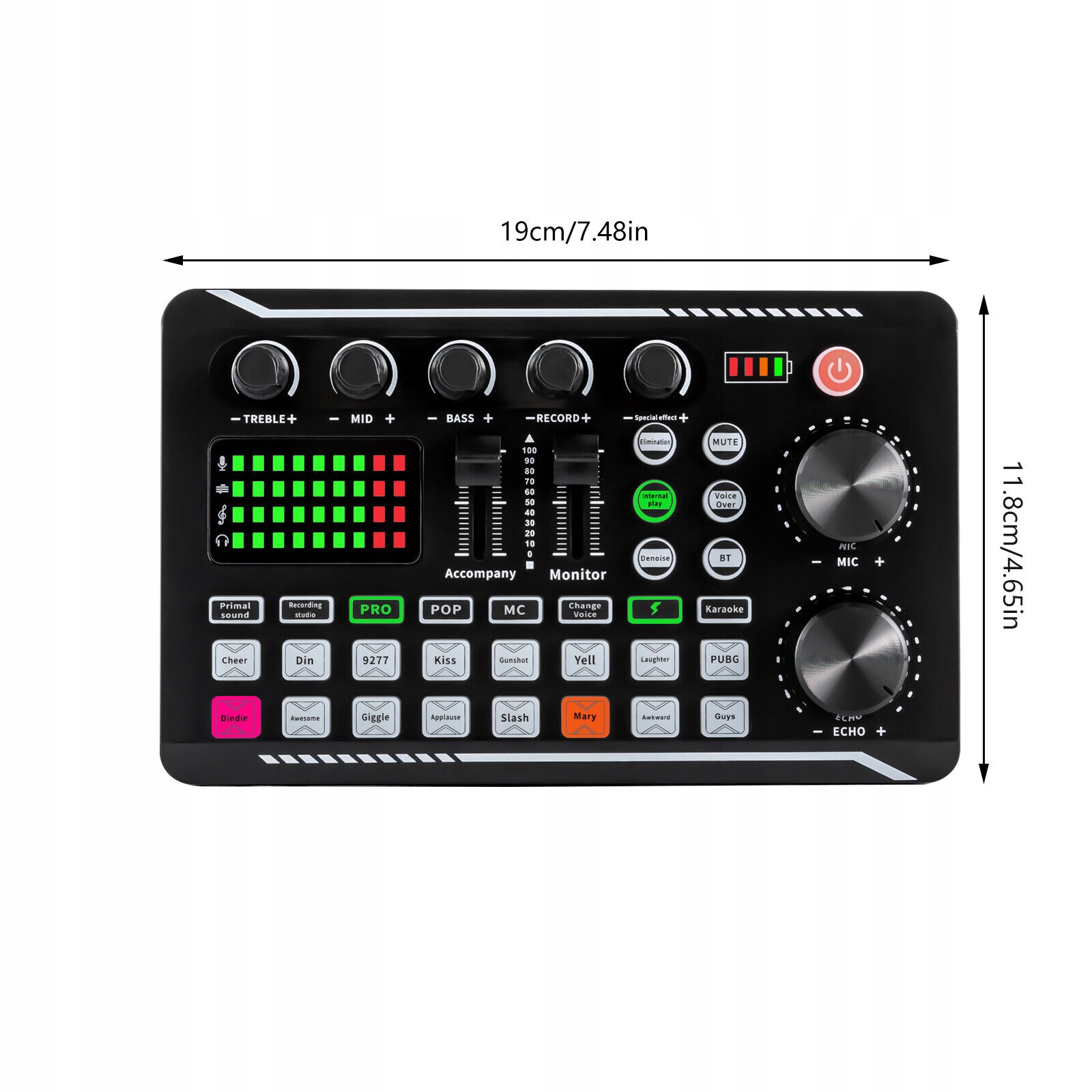 Круглый край: изделие имеет гладкие края, что предотвращает появление царапин на коже во время установки или использования и повышает вашу безопасность.Прозрачные кнопки: кнопки изделия очень понятны, и каждая рабочая кнопка отмечена соответствующей функцией. Позволяет делать это более удобно и легко.Sound Changer: Эта звуковая карта имеет настройки изменения звука. Он поддерживает несколько звуковых эффектов, таких как преобразование женского голоса в мужской голос, мужской голос в женский голос, голос монстра и детский голос. Это может принести больше удовольствия в вашу живую студию.Применение