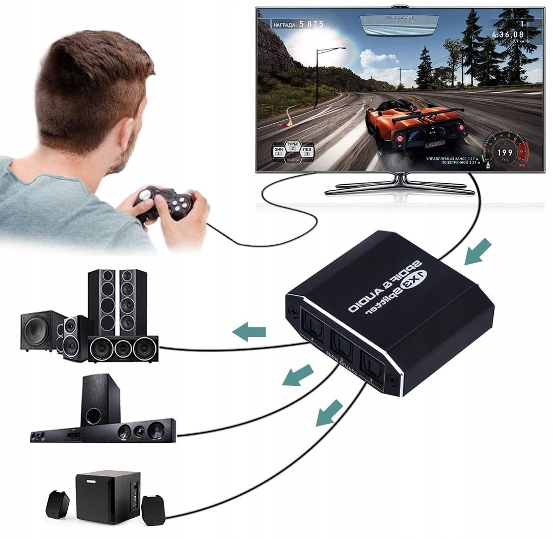 Наиболее распространенное использование этого устройства — подключение нового телевизора с цифро-оптическим выходом к другим аудиоустройствам, оснащенным таким же разъемом.