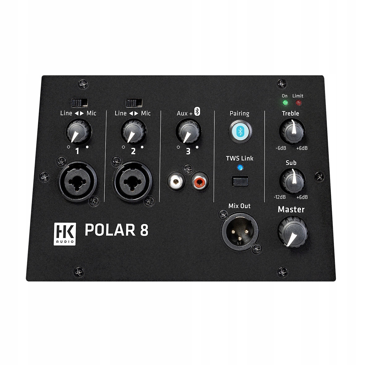 HK Audio POLAR 8 оснащен эффективным 3-канальным микшером и возможностью подключения через Bluetooth TWS (True Wireless Stereo) — вы можете подключить два Polars по беспроводной сети и использовать их в качестве системы потокового стерео!