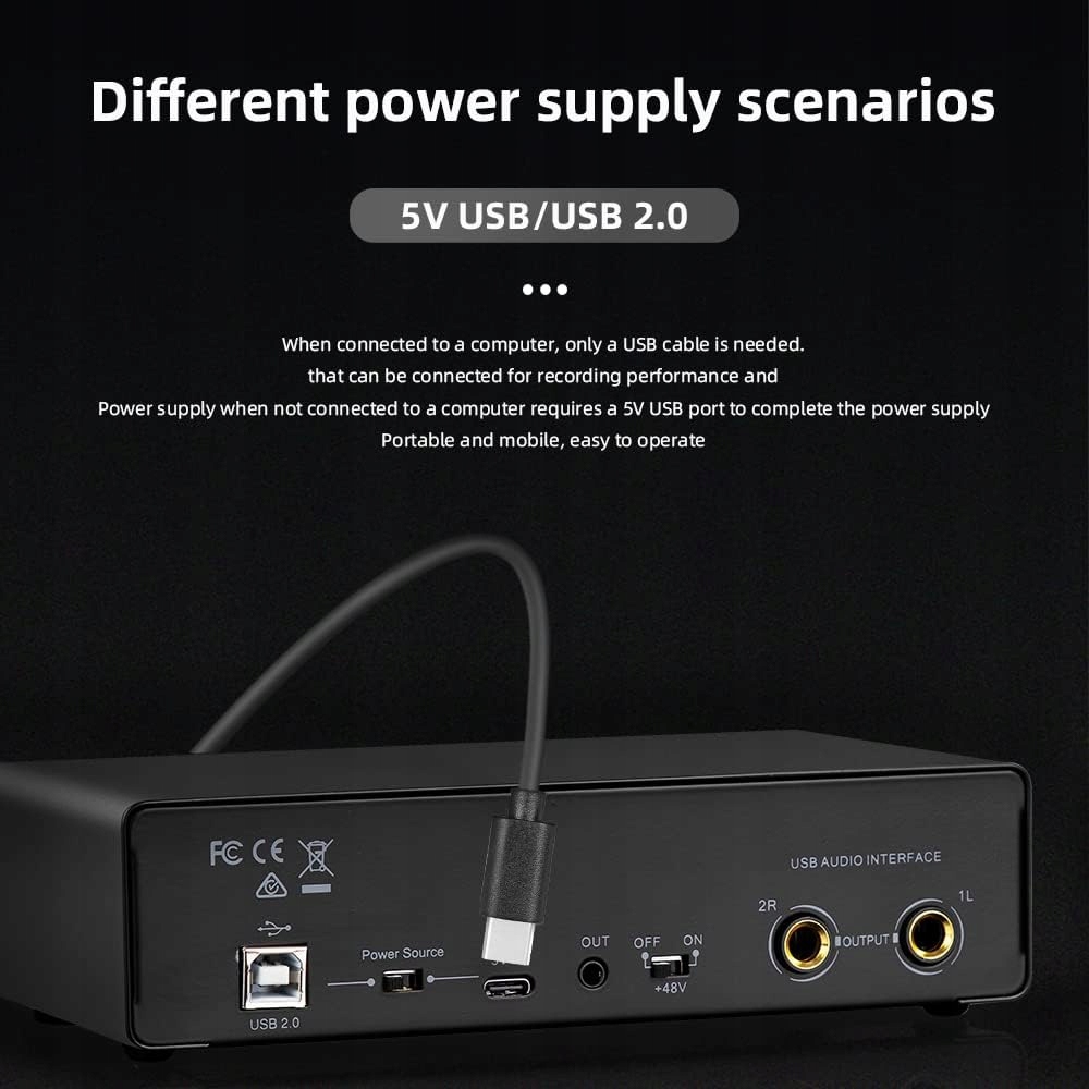 - Технология подключения и воспроизведения, USB Audio Interface поддерживает Mac OS и Windows XP или новые системы, нет необходимости загружать зарезервированные драйверы. Записывайте, уволить и быстро и легко отправьте поток высокого качества. Широко используется в профессиональных студийных записях, живых трансляциях, Facebook, Tiktok, YouTube и т. Д.