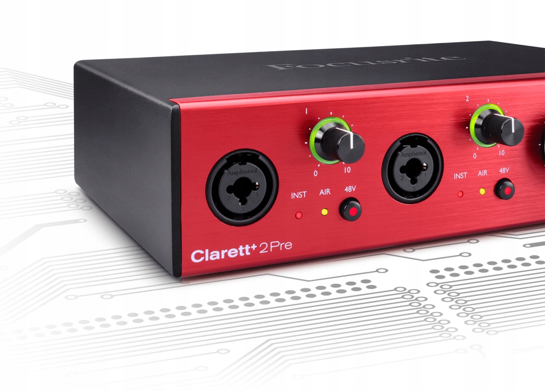 - Два микрофонных предусилителя с функцией Air — звук классических предусилителей Focusrite ISA