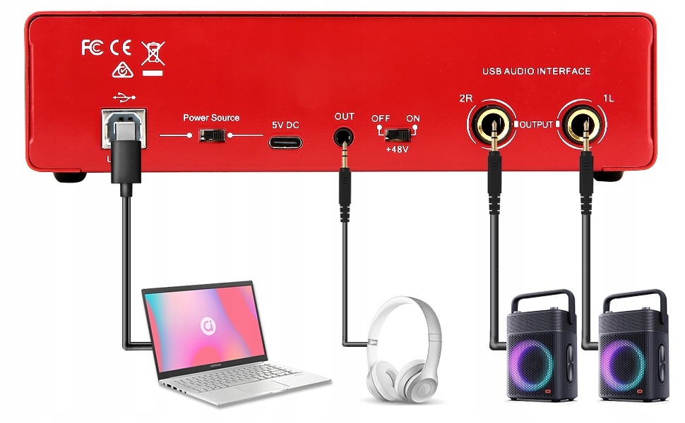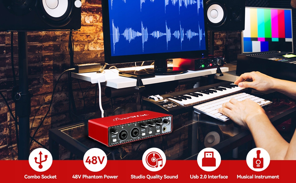 Для загрузки драйверов не требуется! Этот аудиоинтерфейс USB имеет входы левого и правого каналов, что позволяет одновременно подключать микрофоны и инструменты, обеспечивая одновременное создание и воспроизведение музыки на вашем компьютере.