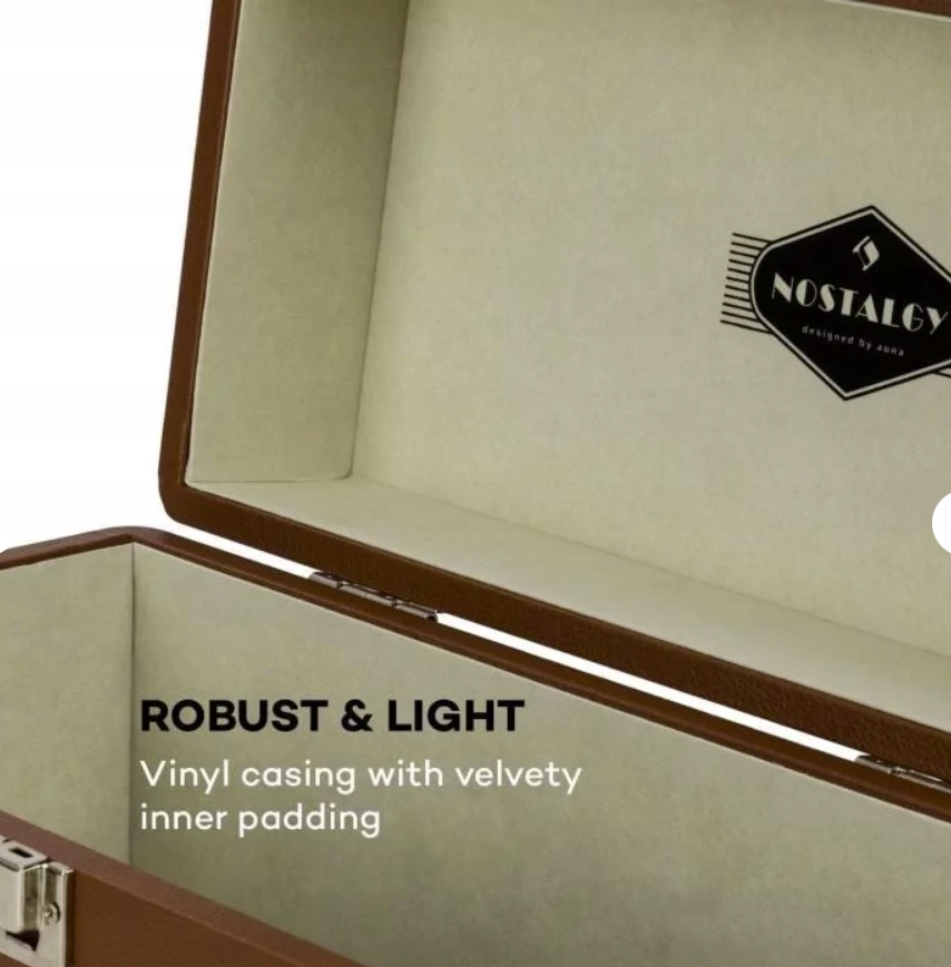 >Пыльная ностальгия: виниловый футляр auna Vinylbox в стиле ретро 1960-х годов дает любителям винила возможность перевозить свои драгоценные коллекции.