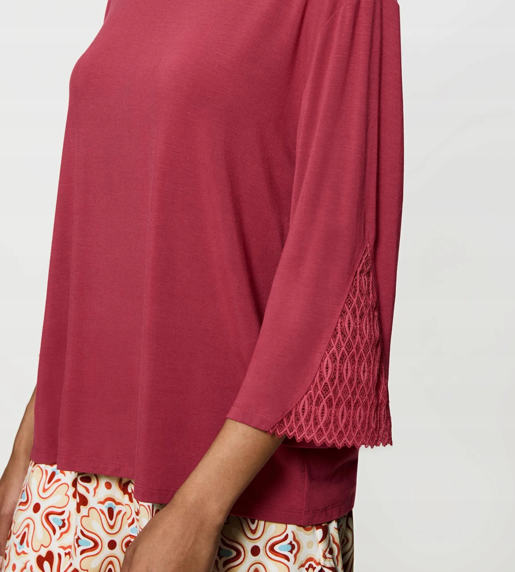 Универсальный топ с тремя четвертым рукавами, созданный для постоянного комфорта в течение года. Сделано почти полностью из тонкого и гибкого модального материала Tencel ™, который идеально подчеркивает фигуру. Тонкие кружевные вставки добавляют деликатную элегантность, создавая идеальное сочетание чувственности и комфорта.