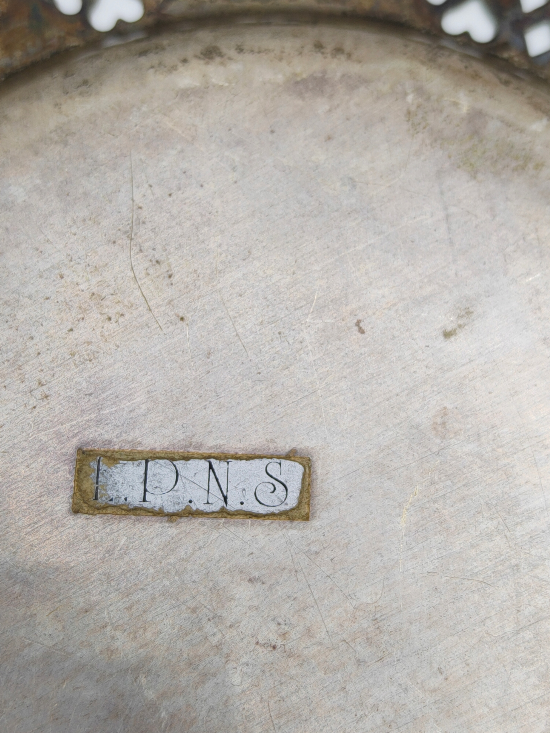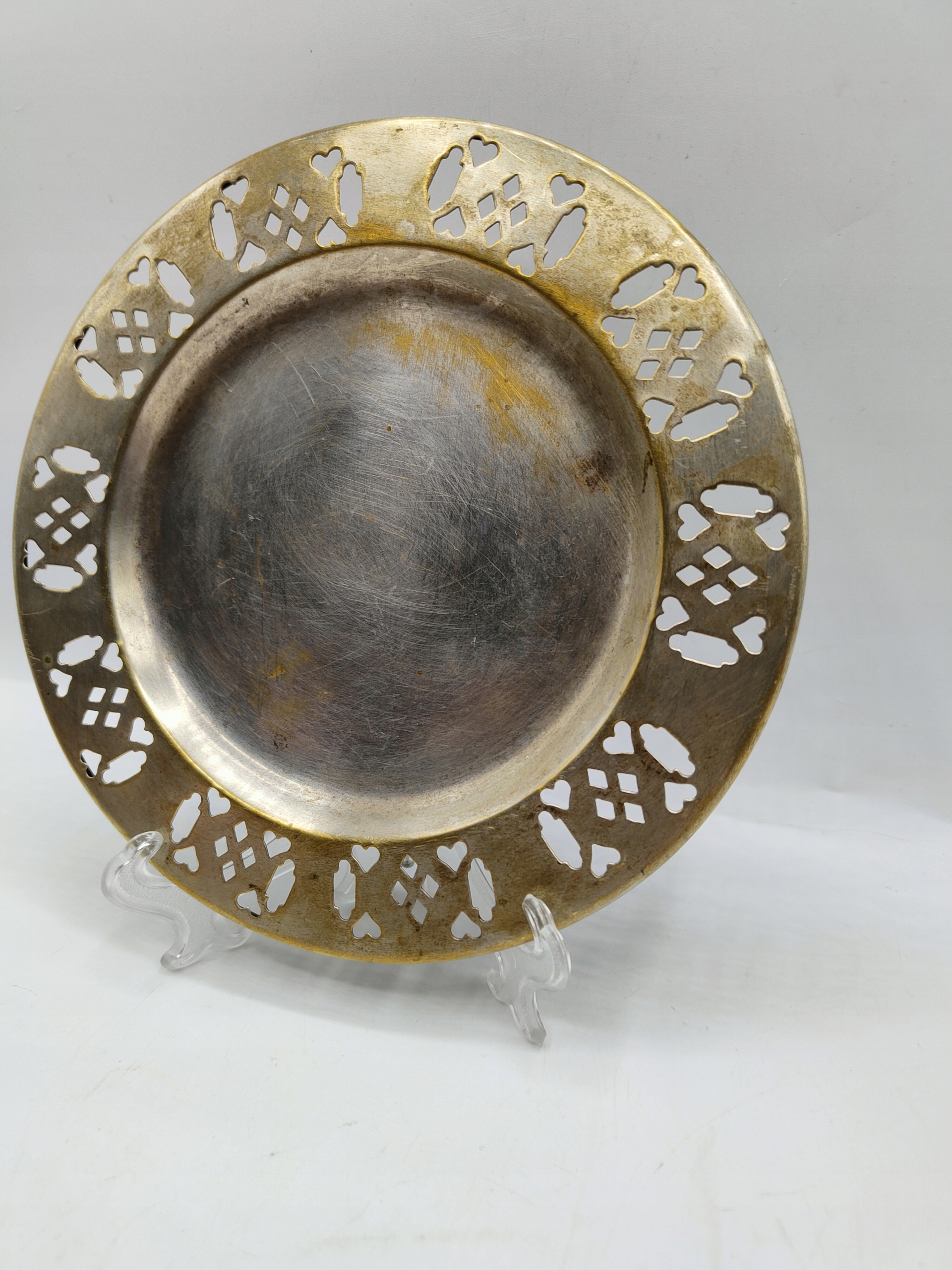 ażurowy bardzo stary talerzyk, platerowany srebrem