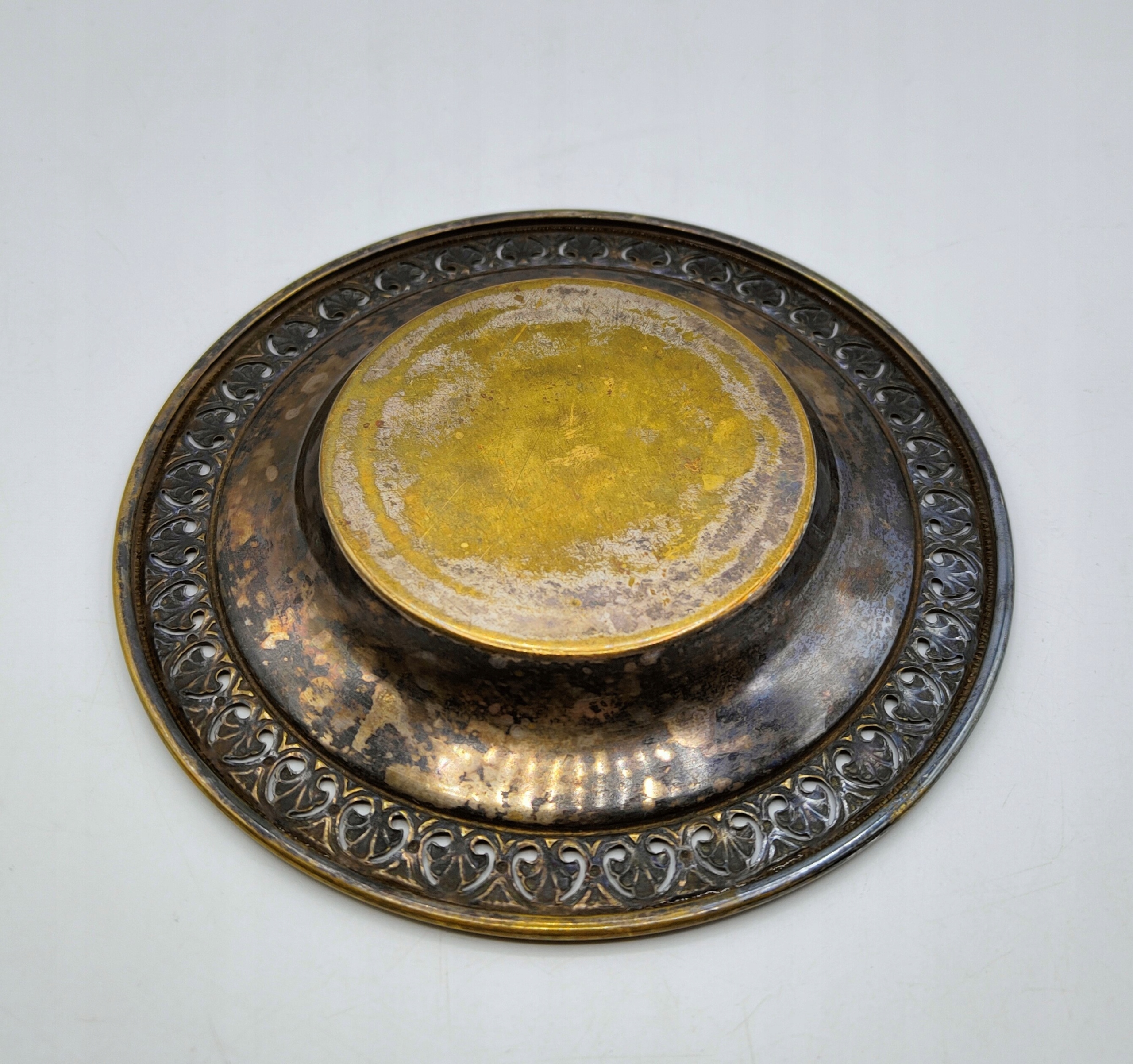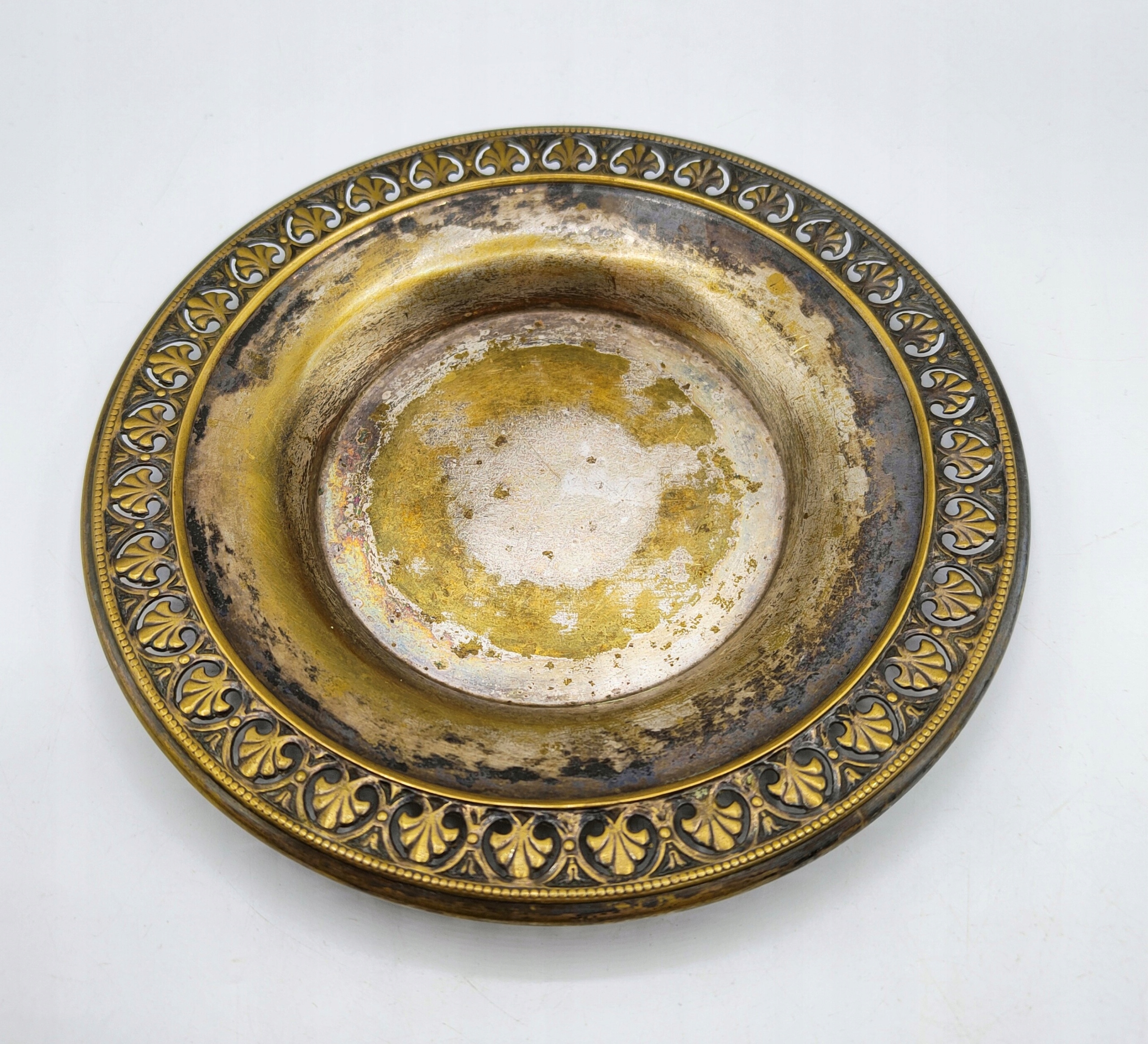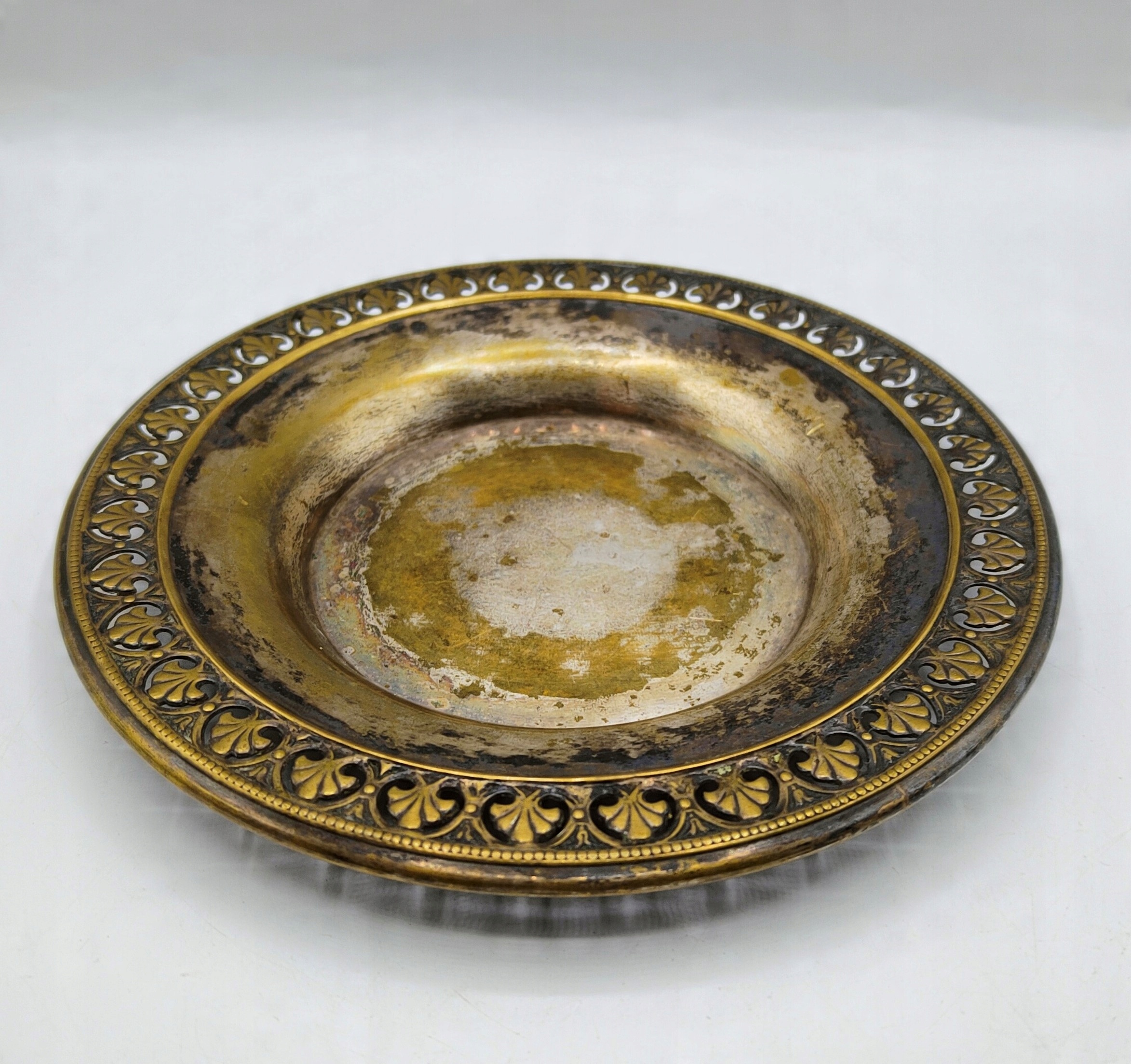 Ażurowy TALERZ platerowany STARY widać już mosiądz