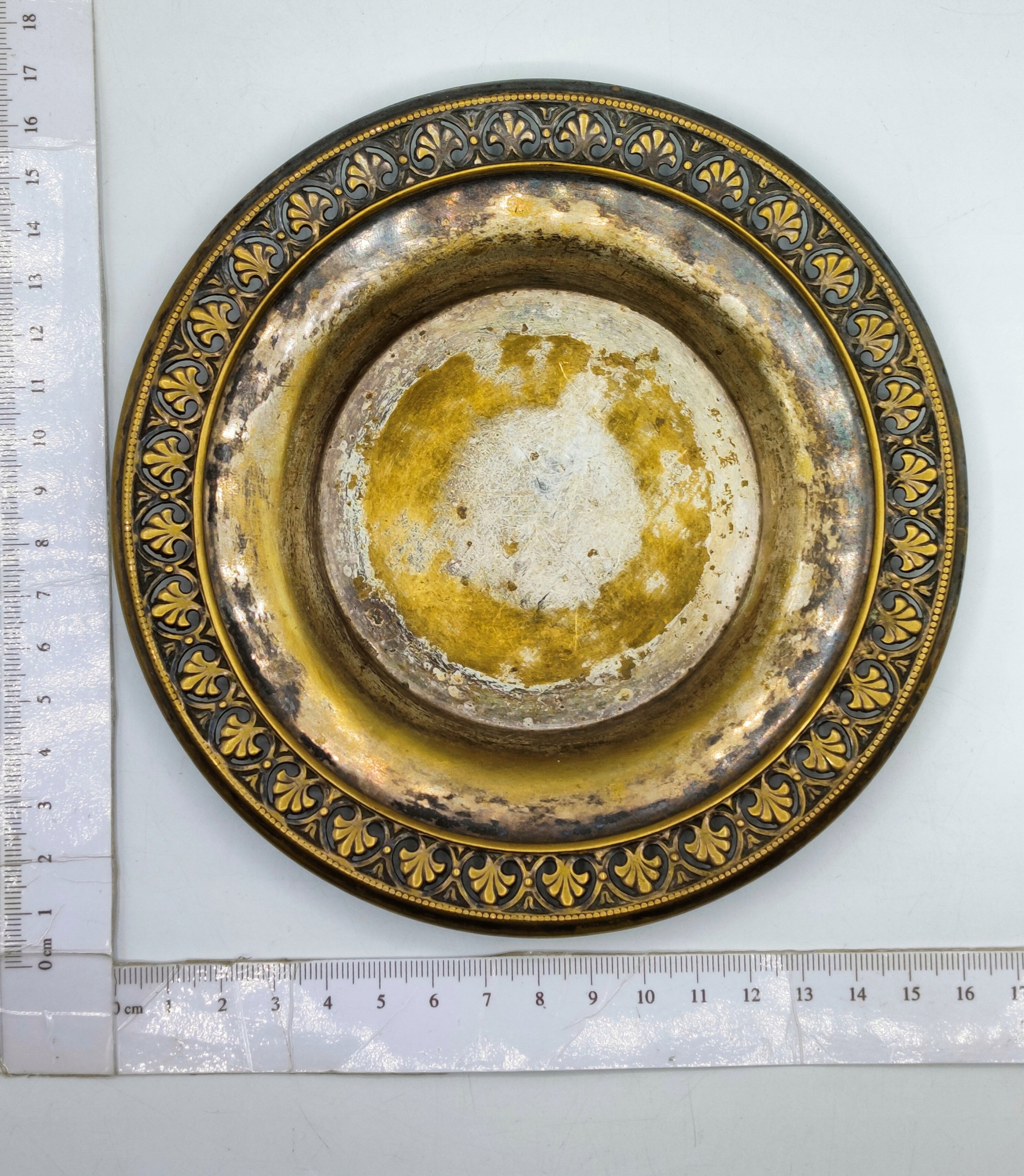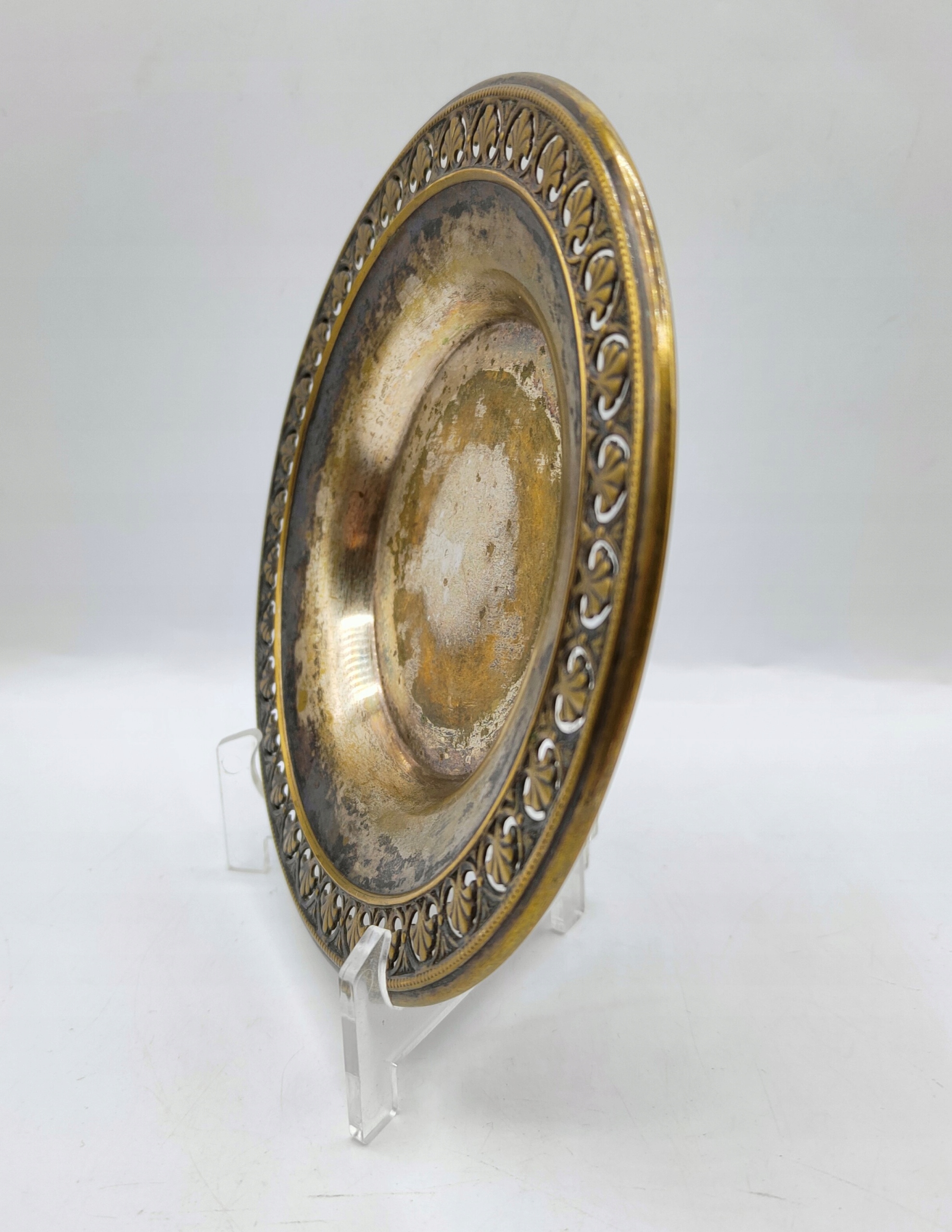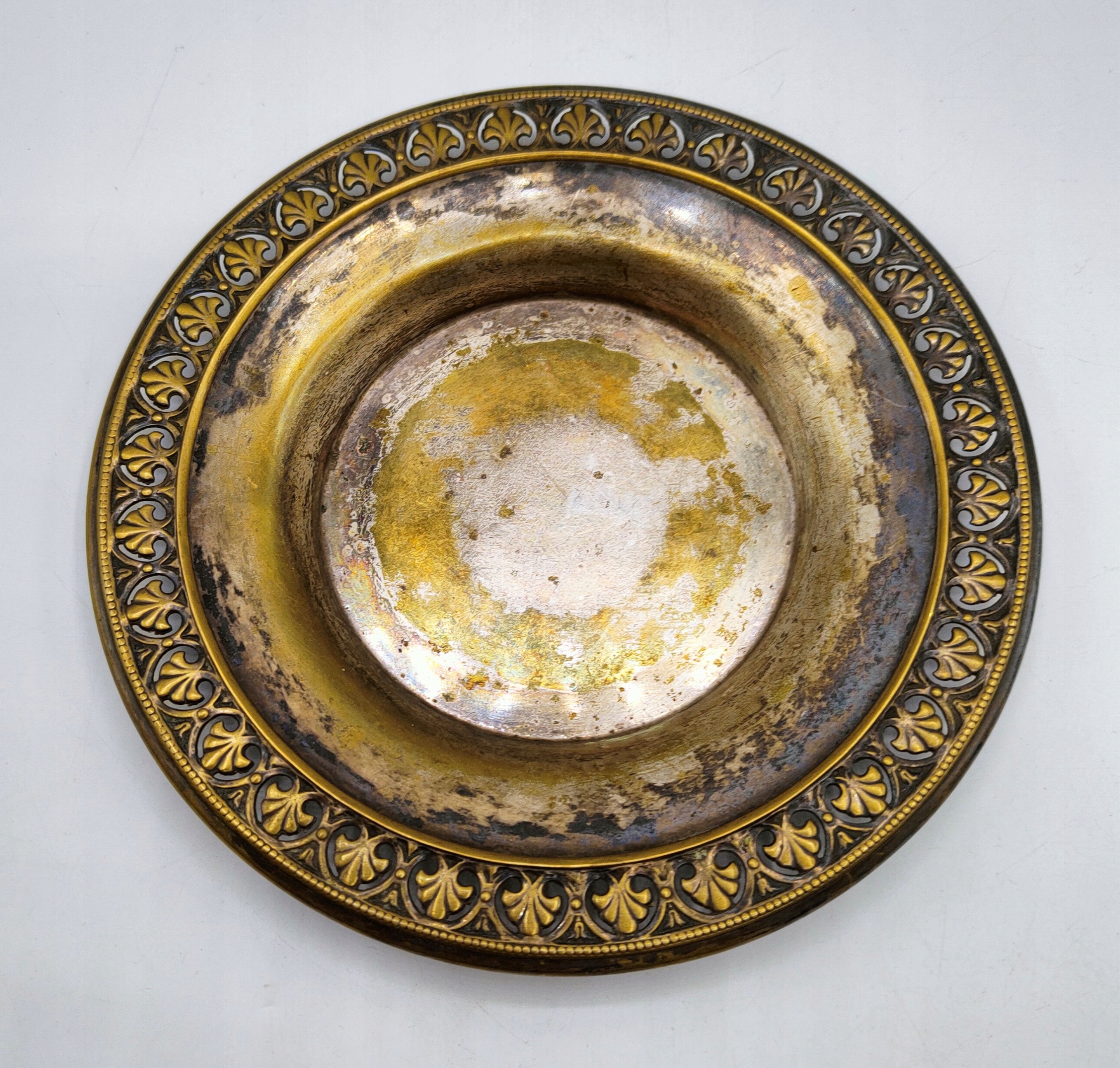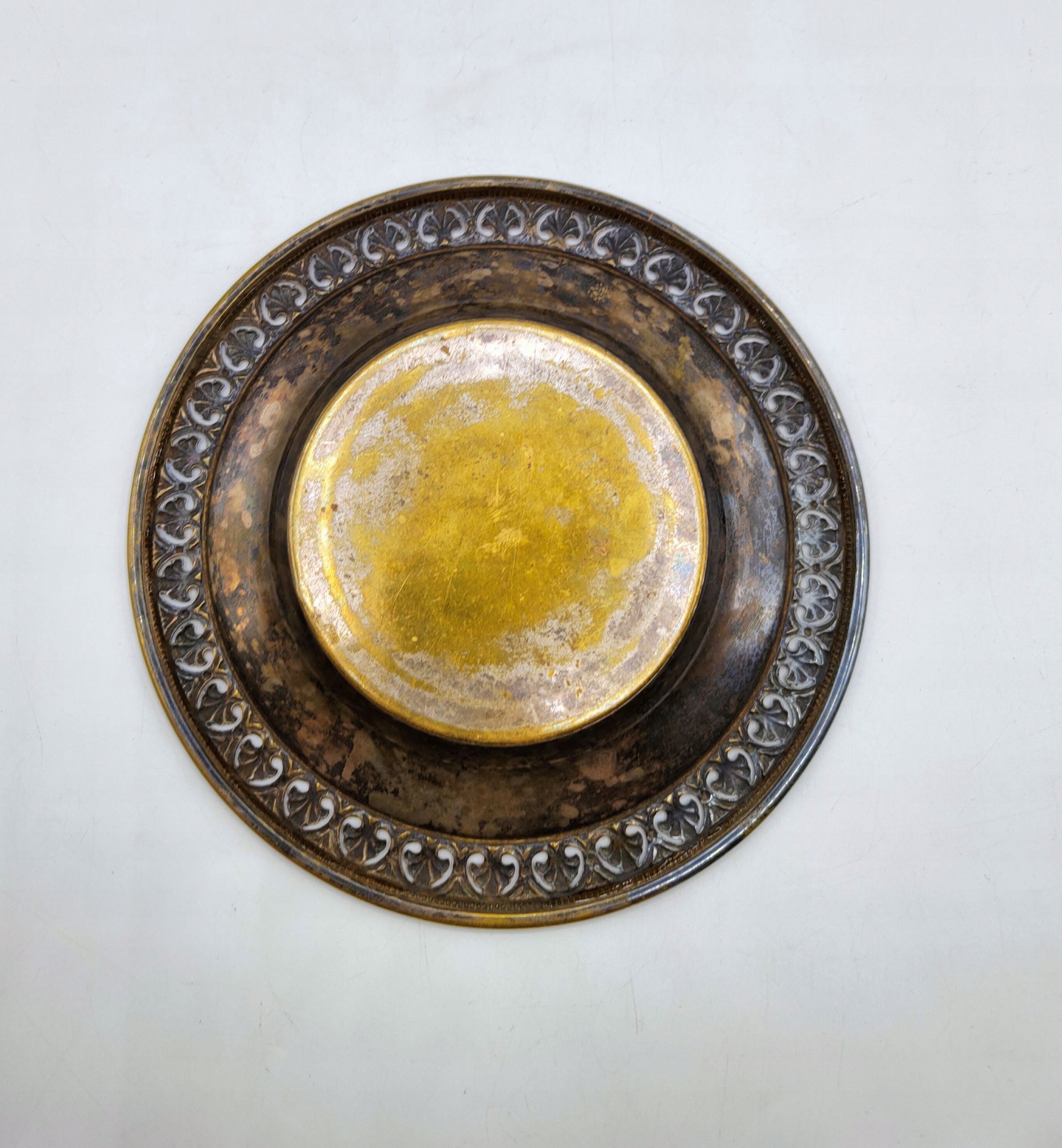 Ażurowy TALERZ platerowany STARY widać już mosiądz