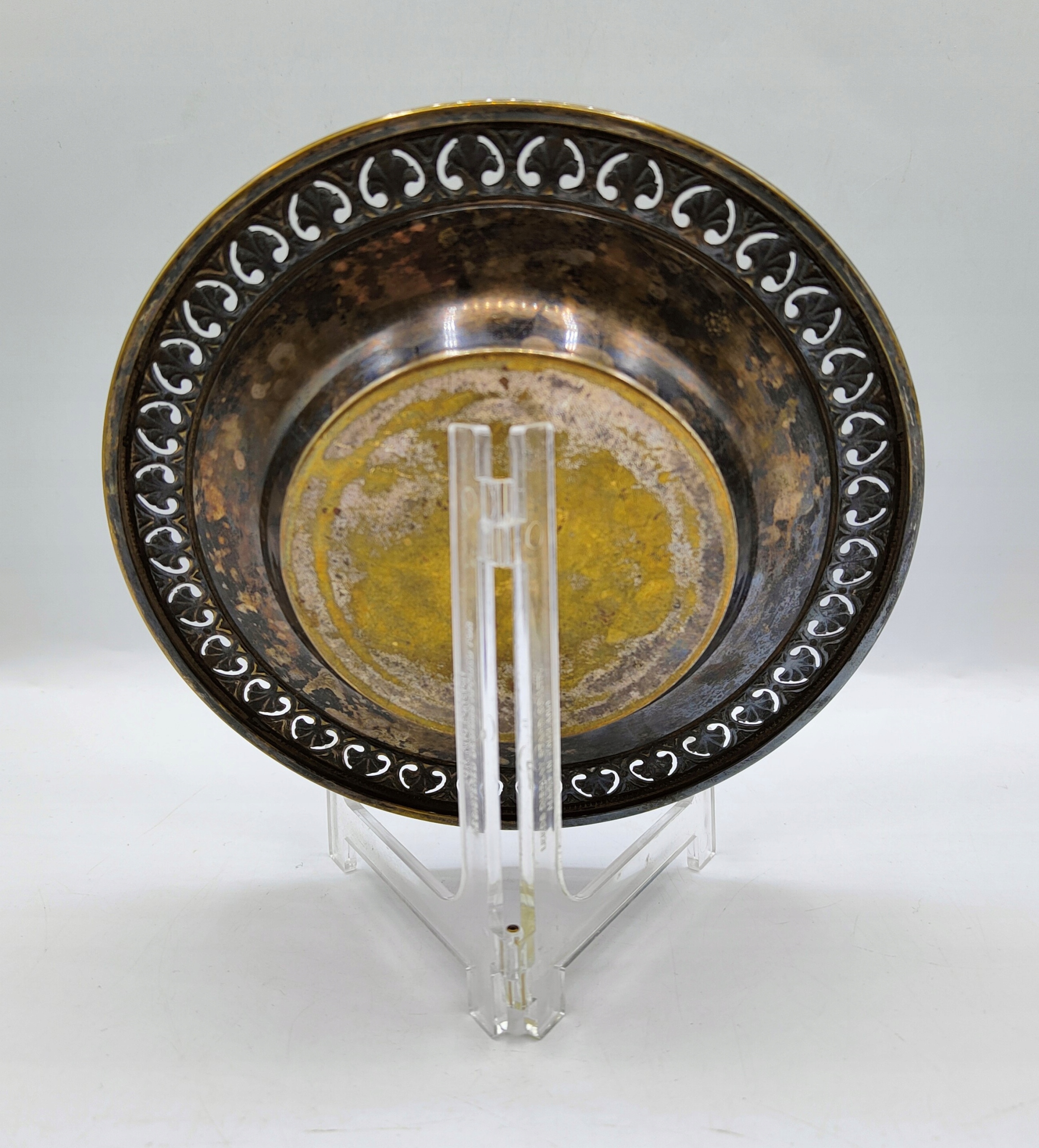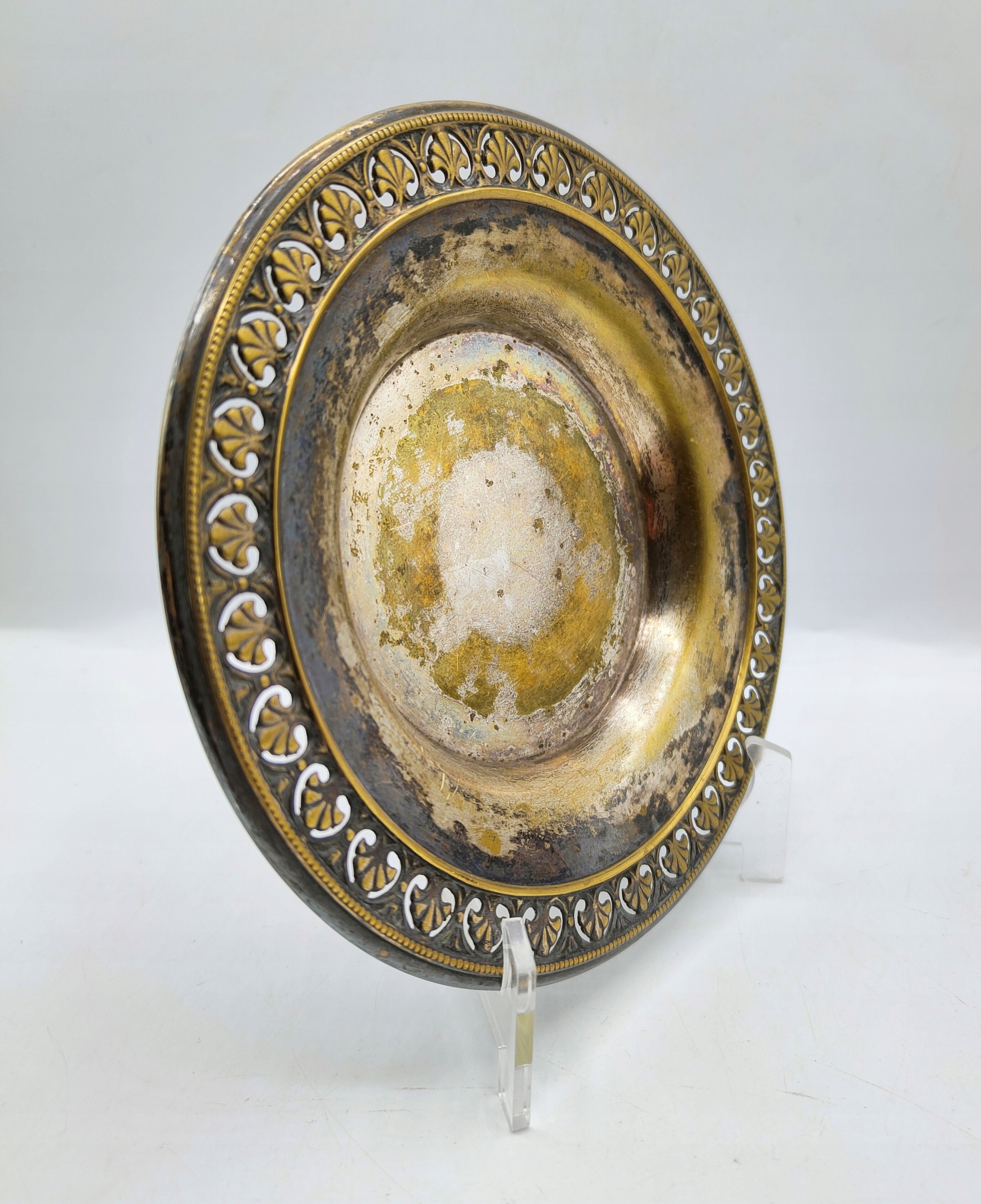 Тарелка ажурная, посеребренная, СТАРАЯ, потертая, уже видно латунь/медь!