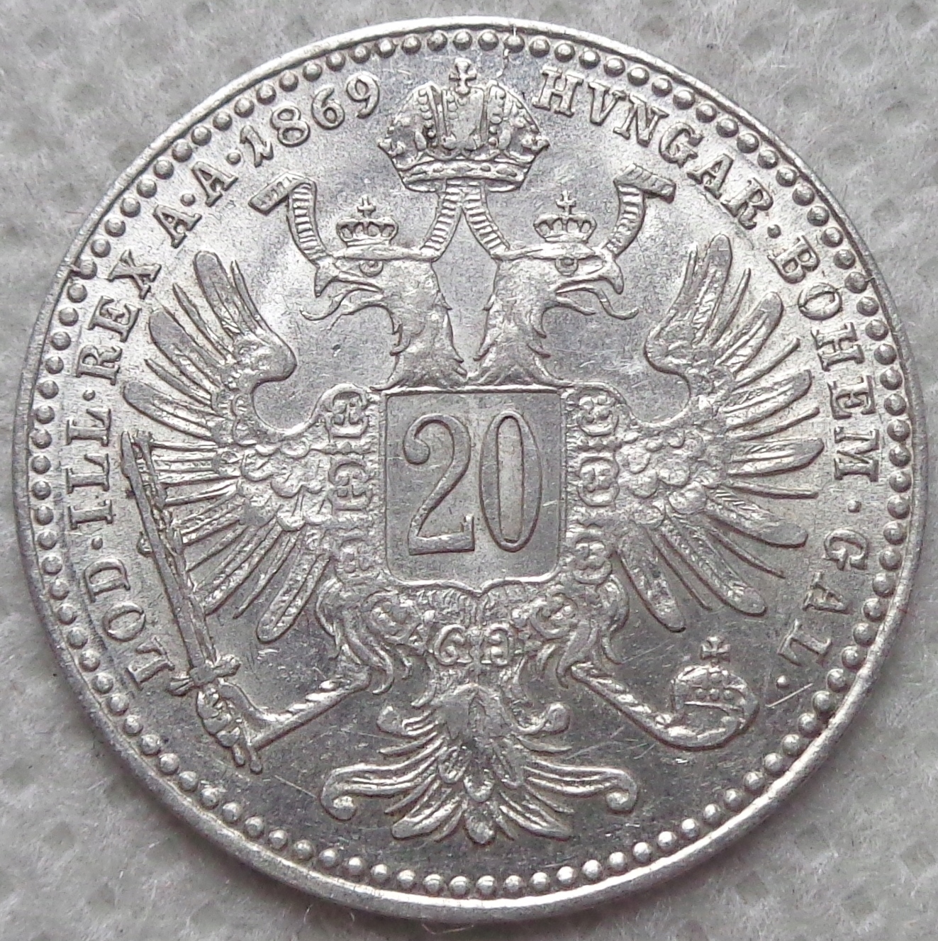 AUSTRIA - 20 Krajcarów / kreuzer 1869 - srebro / 1