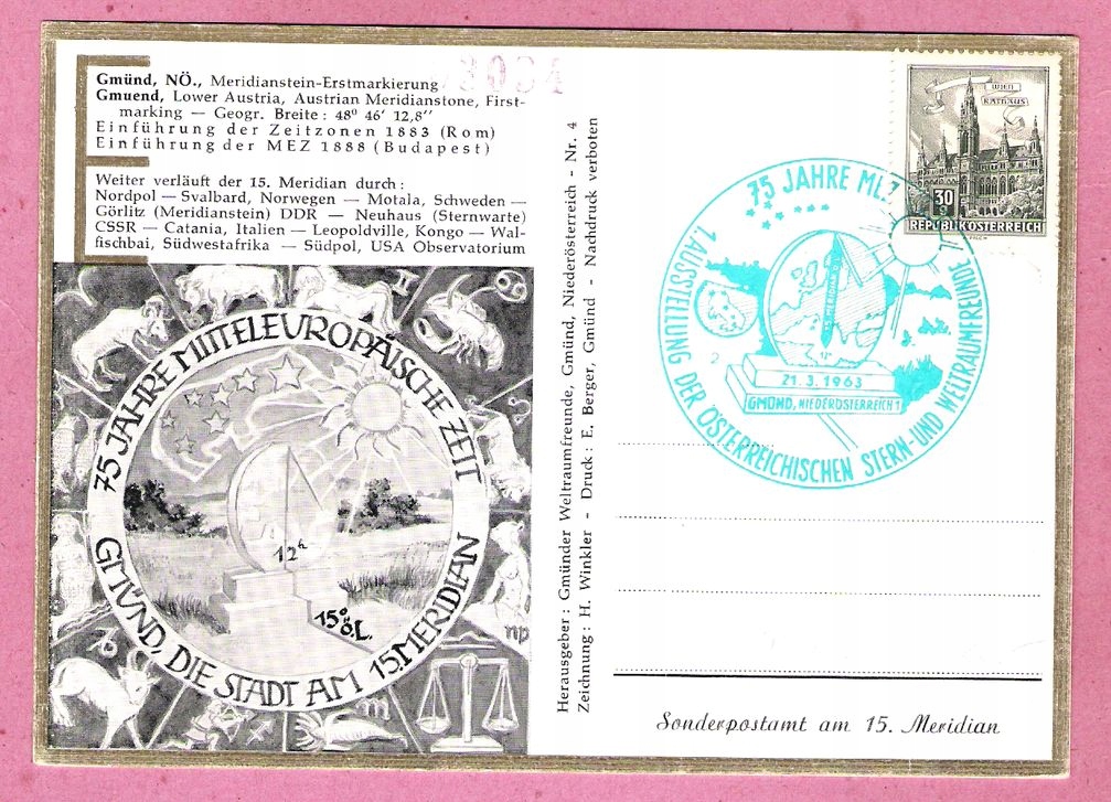 Austria 1963 st.Gmund, zodiak, geografia, 15-ty południk