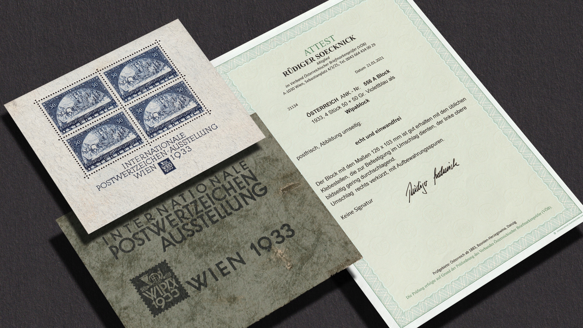 Austria I Wystawa WIPA Blok ** + Folder + Certyfikat 1933