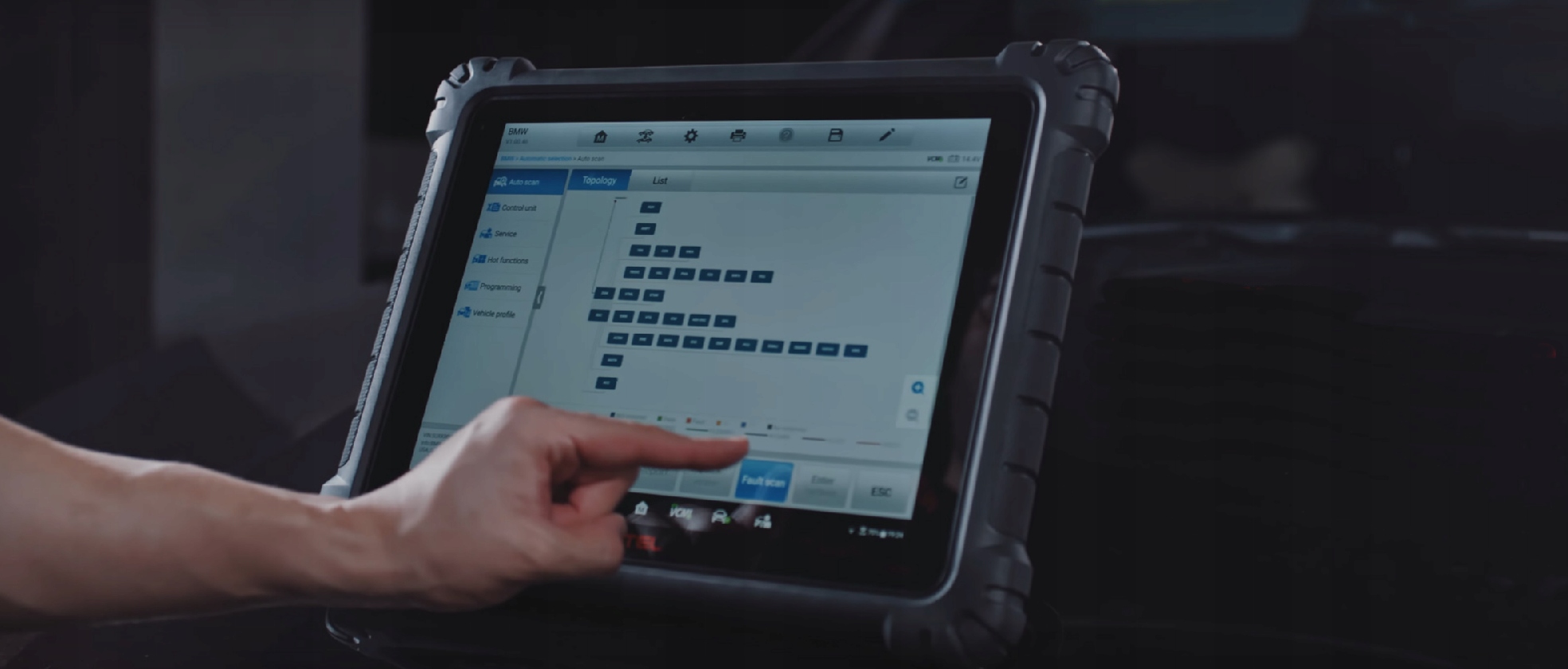 Оборудование высшего класса!!! Это автономное мастерское устройство, диагностический комбайн, оснащенный 12,9-дюймовым сенсорным экраном, бронированным мастерским корпусом типа «Rugget»! Он оснащен очень быстрым 8-ядерным процессором и системой Android и позволяет проводить беспроводную диагностику через интерфейс Bluetooth.