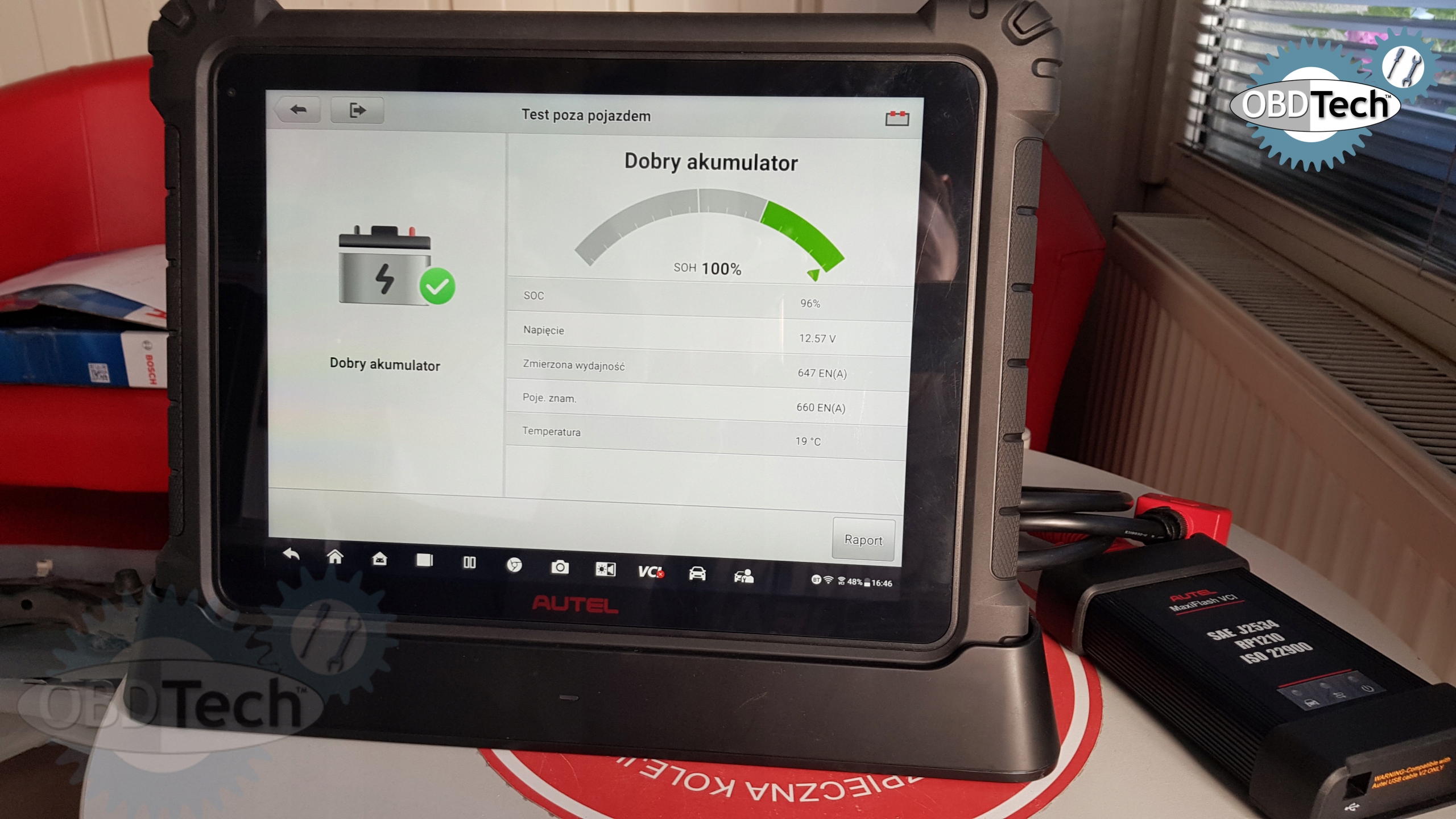 выполняет анализ батареи и зарядную систему, используя покупку дополнительного тестера Maxibas BT506