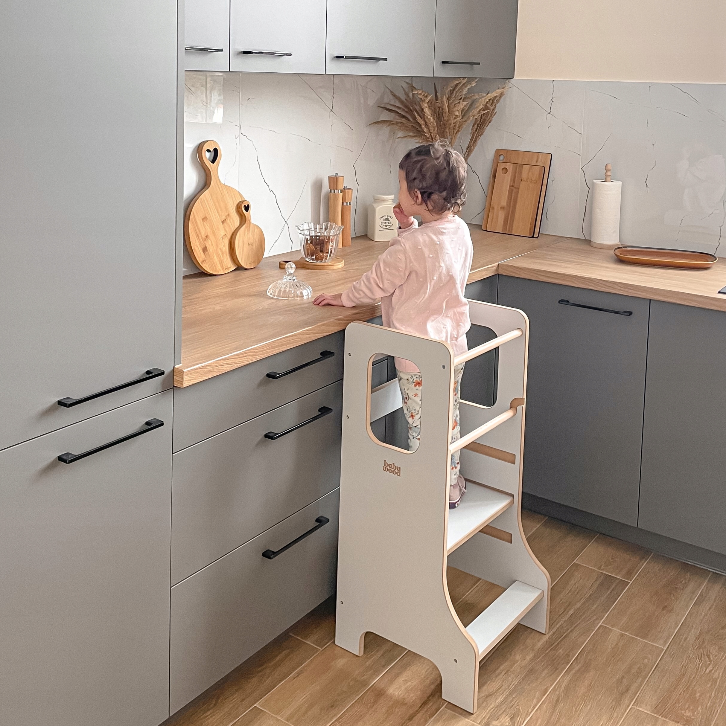 Закругленные края и гладкая поверхность созданы с учетом безопасности любопытных маленьких ручек. Использование натуральных материалов положительно влияет на сенсорное развитие ребенка, благодаря чему KITCHEN HELPER SLIM не только практично, но и способствует положительному развитию ребенка.