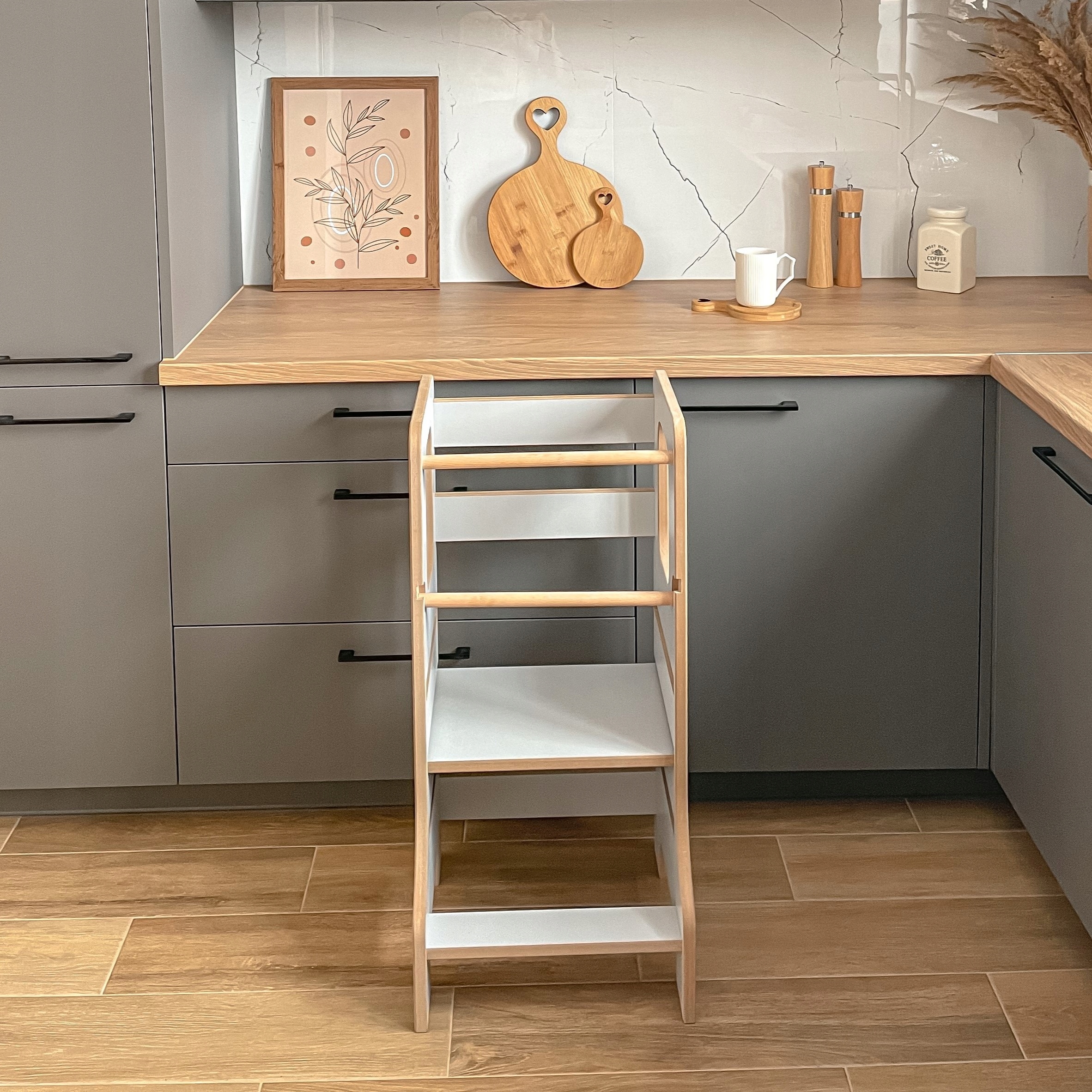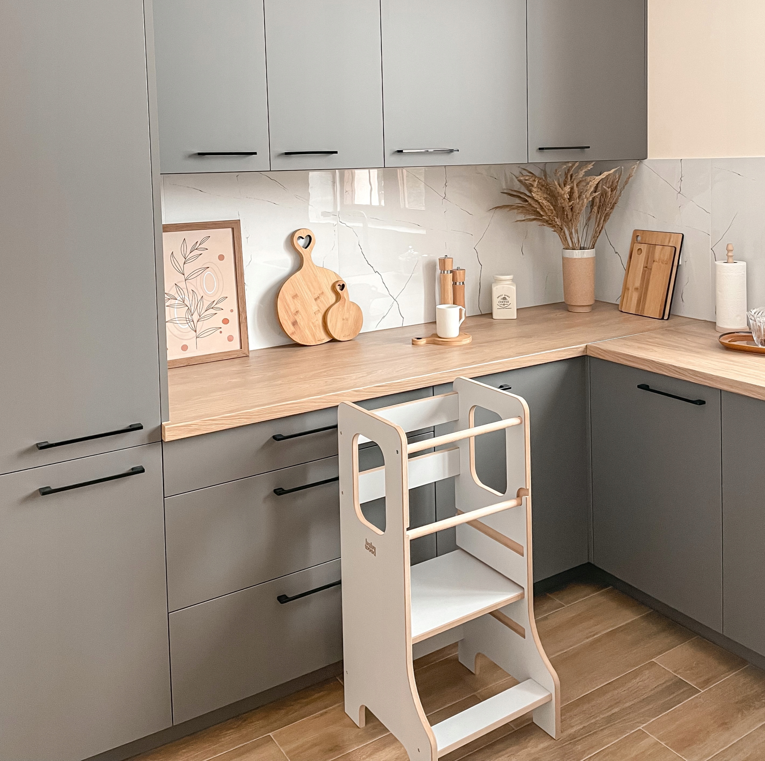 KITCHEN HELPER SLIM позволяет детям участвовать в повседневной семейной жизни, занимаясь приготовлением еды и другими практическими занятиями. Этот универсальный инструмент помогает детям обрести уверенность в себе, развить новые навыки, а также способствует здоровому взаимодействию в семье.