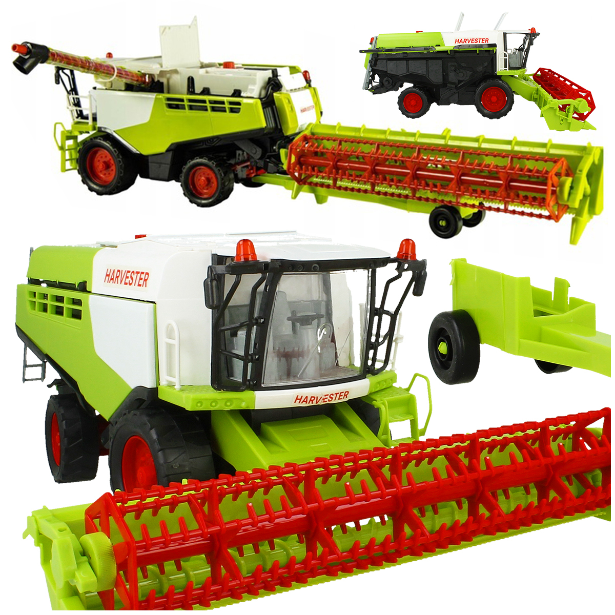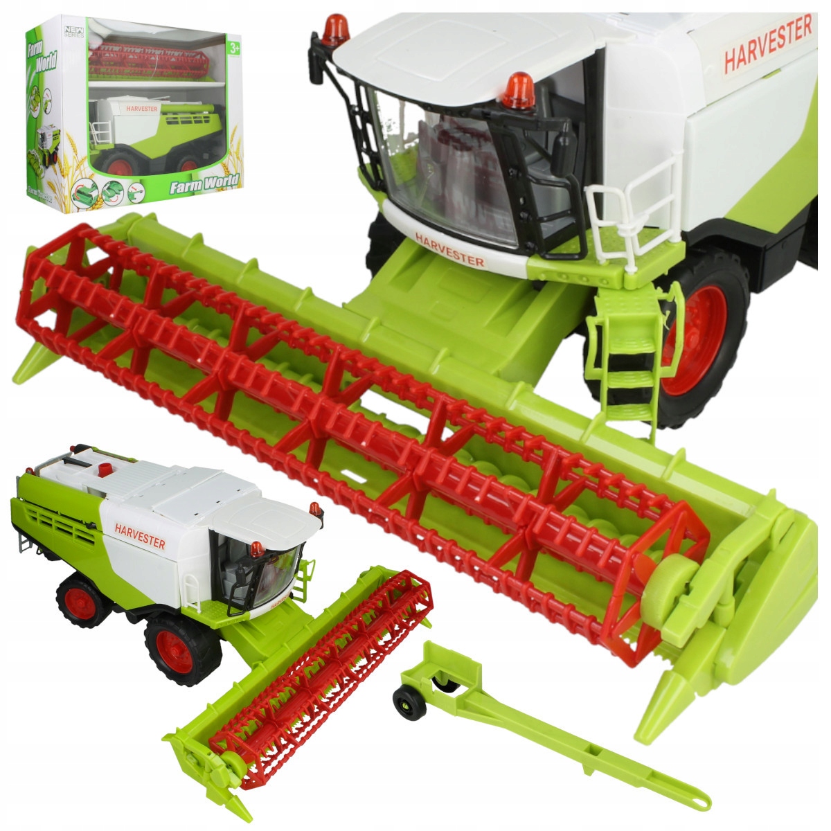Кроме того, набор включает в себя трейлер для транспортировки Хедер, который прикрепляется к крюку на задней части комбината.