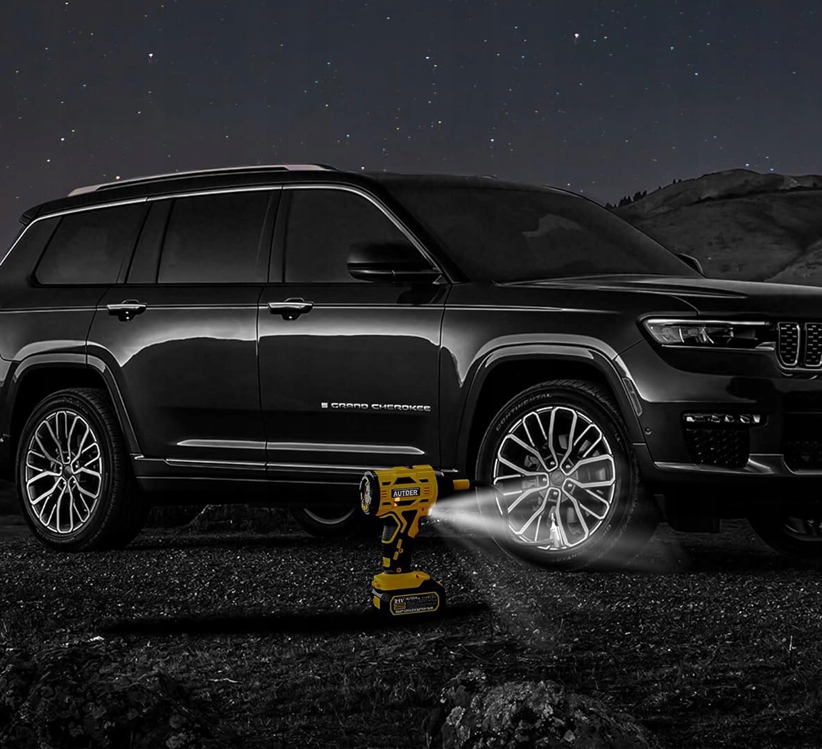 【Два источника питания】 Независимо от того, беспроводной или использование более легкого розетки на 12 В, этот воздушный насос предлагает универсальность. Вы можете удобно надуть шины где угодно и время.