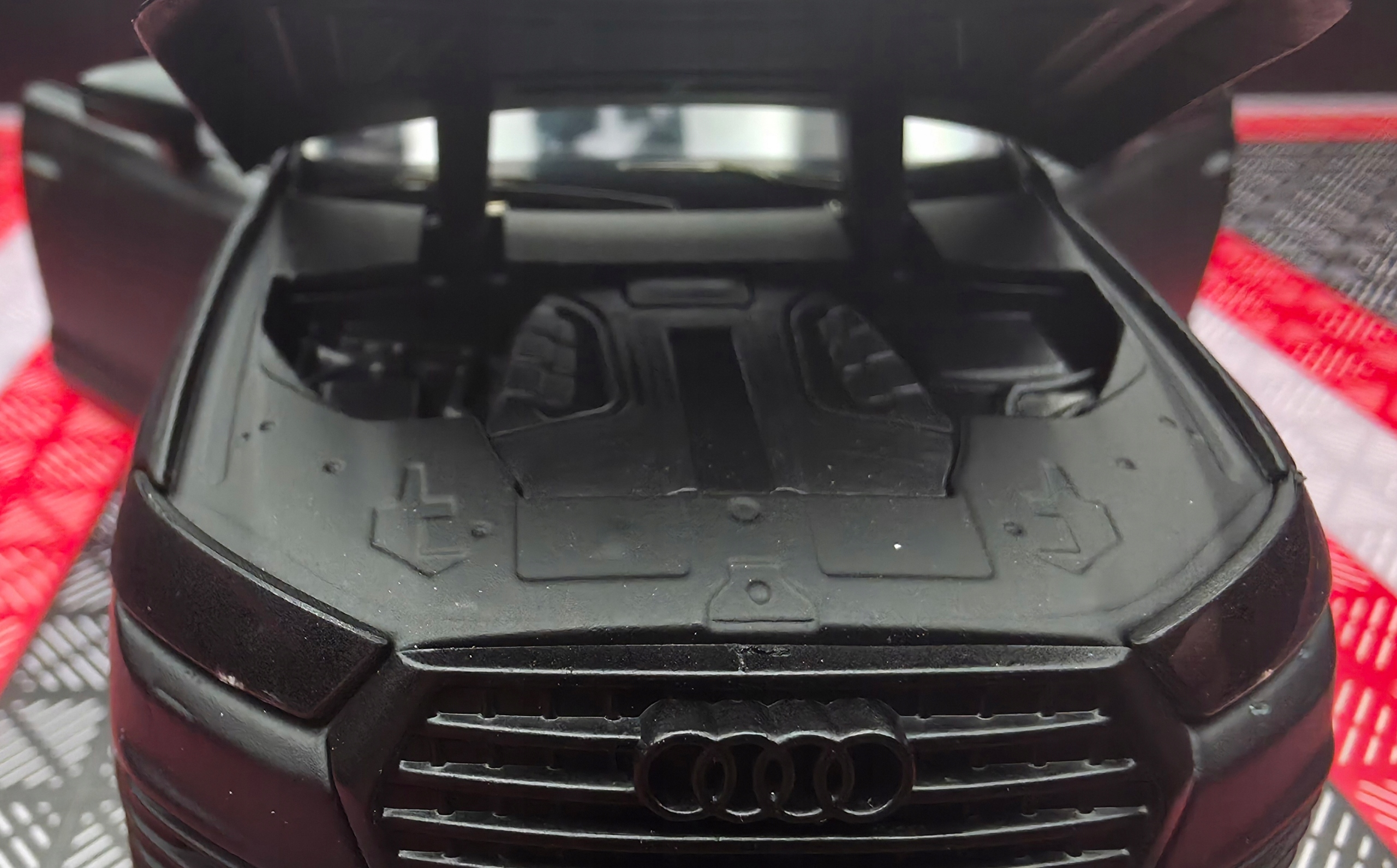 Внедорожник Audi Q7 обладает множеством преимуществ, которые наверняка порадуют нашего ребенка. Что ж, открытие двери активирует сигнализацию с ритмично мигающими огнями и звуковым сигналом. Приборная панель в автомобиле имеет элемент подсветки.