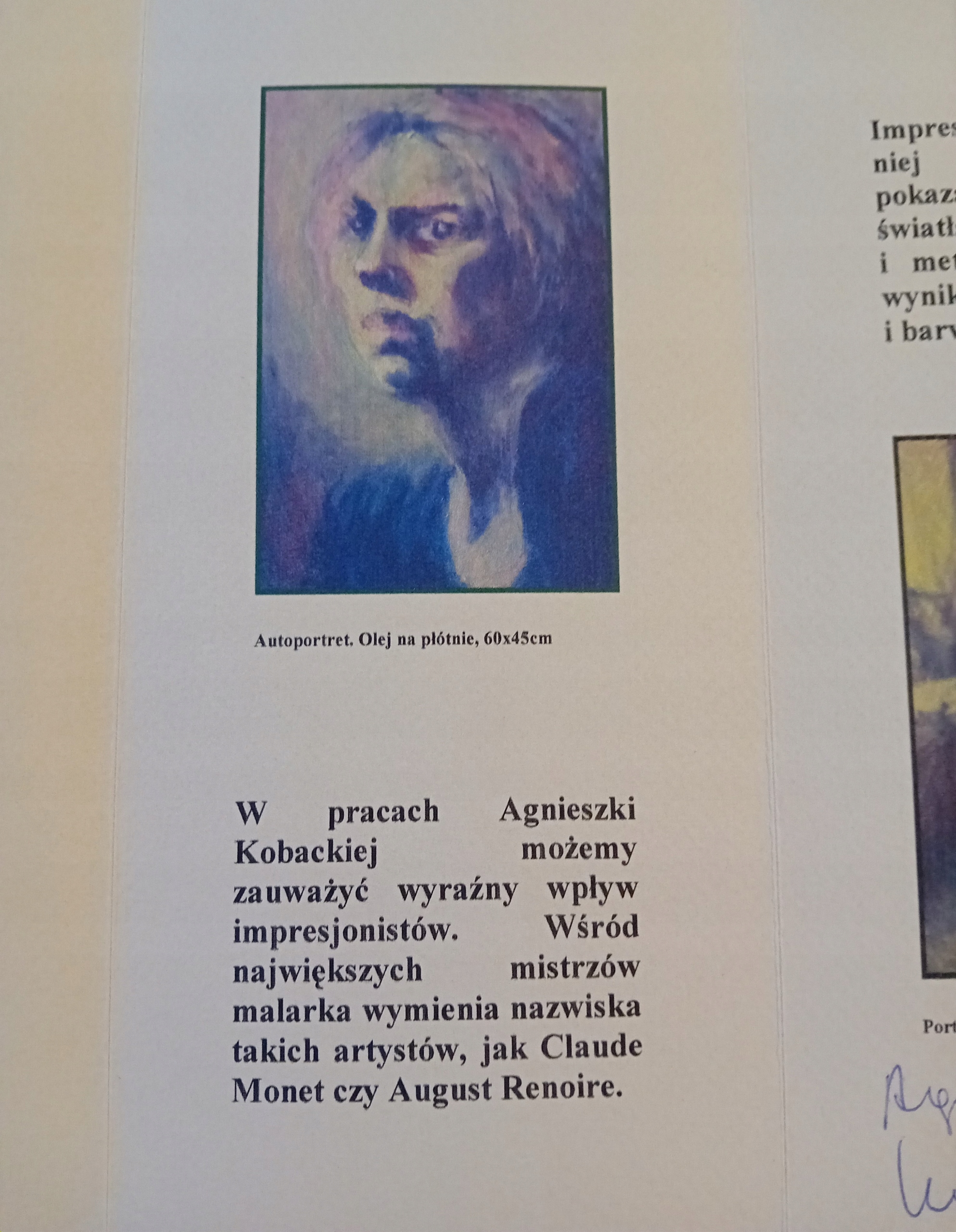 Autograf malarki - Agnieszki Kobackiej. 2001 r.