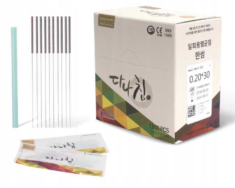 Оригинальные корейские иглы для акупунктуры со стальной ручкой и НАПРАВИТЕЛЕМ, производства Dana. Иглы одноразовые, стерильные, упакованы в блистер по 10 игл + 1 проводник. Иглы имеют сертификаты, в том числе CE, и допущены к торговле по всей Европе. Игла изготовлена из стали высшего качества, ручка имеет стальную оплетку.