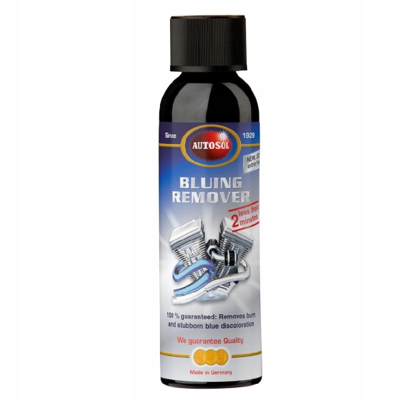 Предназначен для удаления теплового обесцвечивания металлических компонентов. Удаляет ожоги и изменения цвета с поверхностей из титана и нержавеющей стали, таких как насадки выхлопных труб мотоциклов, выхлопные трубы автомобилей, глушители и т. д. Восстанавливает первоначальный блеск. Специально подобранная смесь химических веществ и абразива удаляет даже самые стойкие пятна.