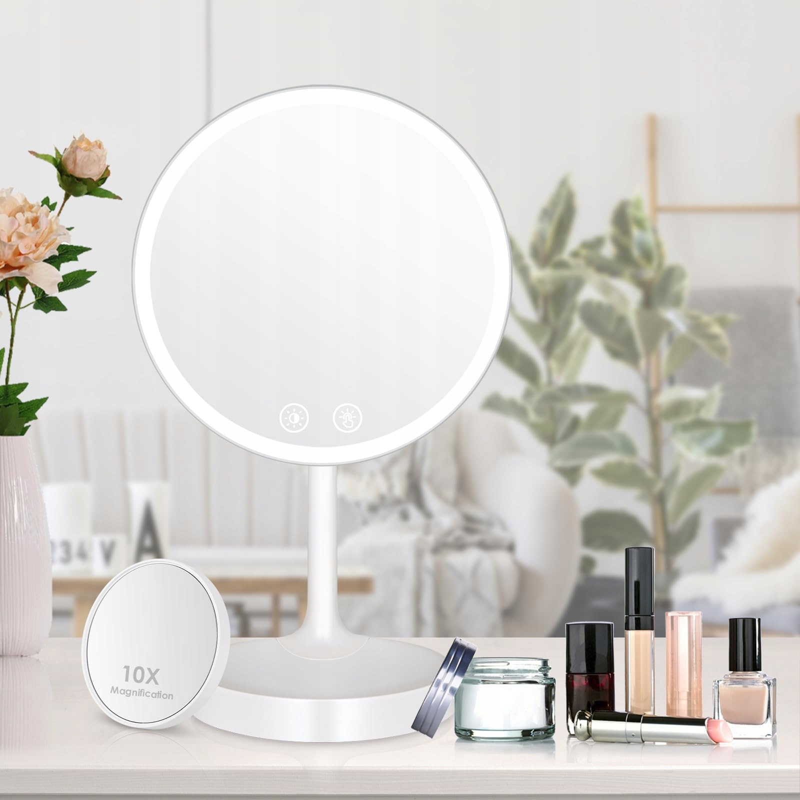 - 【1X/10X увеличительное зеркало】 Настольное зеркало Auxmir со светодиодной подсветкой с регулируемой яркостью и небольшое увеличительное зеркало с 10-кратным увеличением идеально подходит для макияжа, бритья, контактных линз и ухода за лицом, особенно для пожилых и дальнозорких людей.