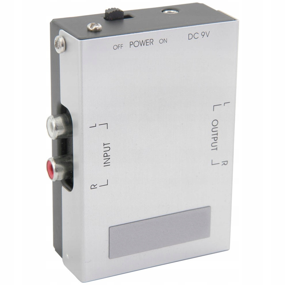 Компактный стереорезонт для переворотов. Эта практическая коробка используется для укрепления сигнала поворотного стола для соответствия и отрегулировать линейный вход усилителя или миксера. Предварительный усилитель оснащен выключателем включения/выключения питания и питается с помощью поставляемого сетевого адаптера или 9 В батареи (P3, не включен в область доставки). Подключение сигнала (внедорожнее) с использованием классических разъемов RCA (L/R)