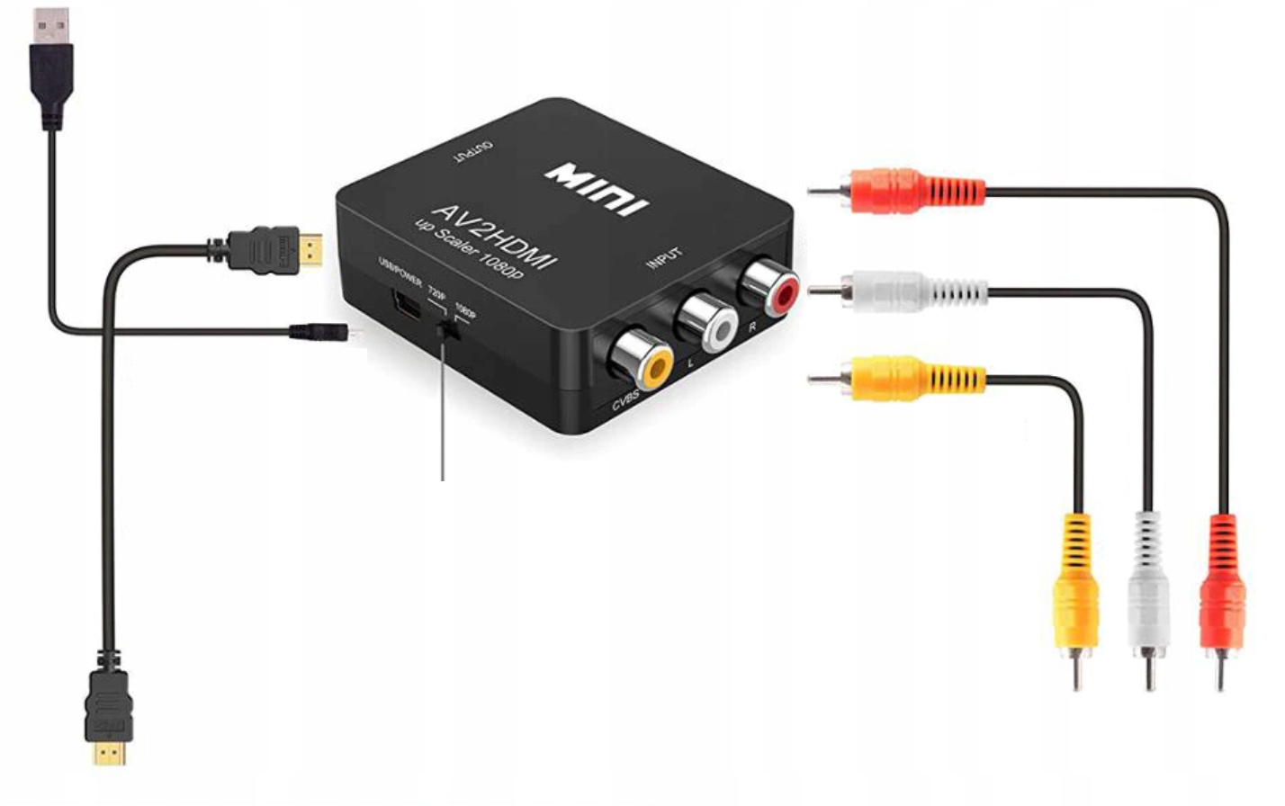 АДАПТЕР AV RCA В HDMI КОНВЕРТЕР CINCH 1080P + кабель питания USB-MINI USB