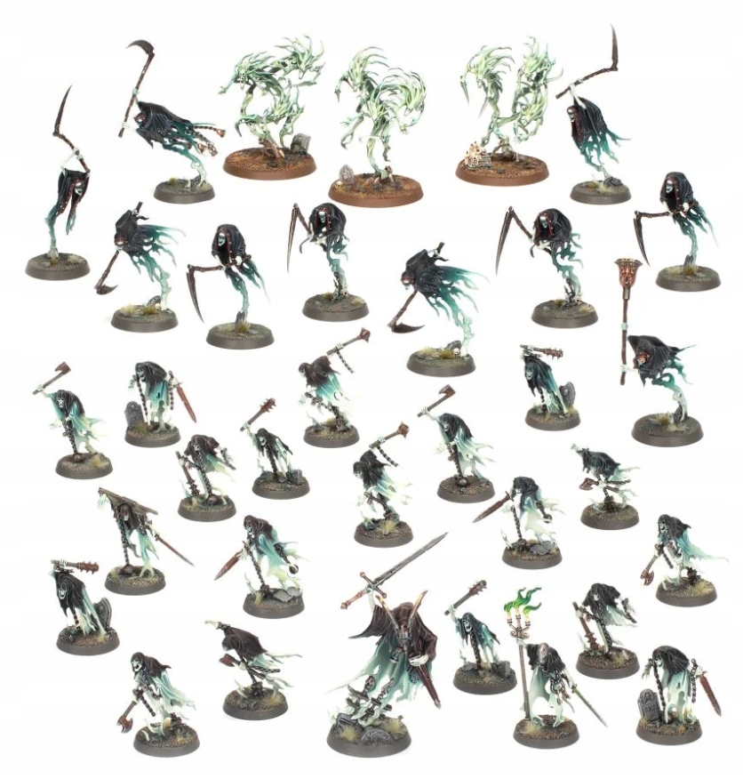 <р> Для тех, кто хочет навести ужас на живых, эта коробка Vanguard станет идеальной отправной точкой для вашей коллекции Nighthaunt или простым способом пополнить ряды ваших призрачных легионов, а также сэкономит вам деньги по сравнению с покупкой контента по отдельности. Этот набор представляет собой полную армию в коробке, которую вы можете вывести на поле в играх Warhammer Age of Sigmar, где герой возглавляет большую боевую линию. <р> В этот набор входят следующие составные пластиковые модели: <р> - 1x Рыцарь Плащаниц <р> - 10 Мрачных жнецов <р> - 20 цепных рашпилей <р> - 3 духовных воинства <р> Все модели комплектуются соответствующими подставками. <р> Фигурки поставляются неокрашенными и требуют сборки — мы рекомендуем использовать пластиковый клей Citadel и краски Citadel.