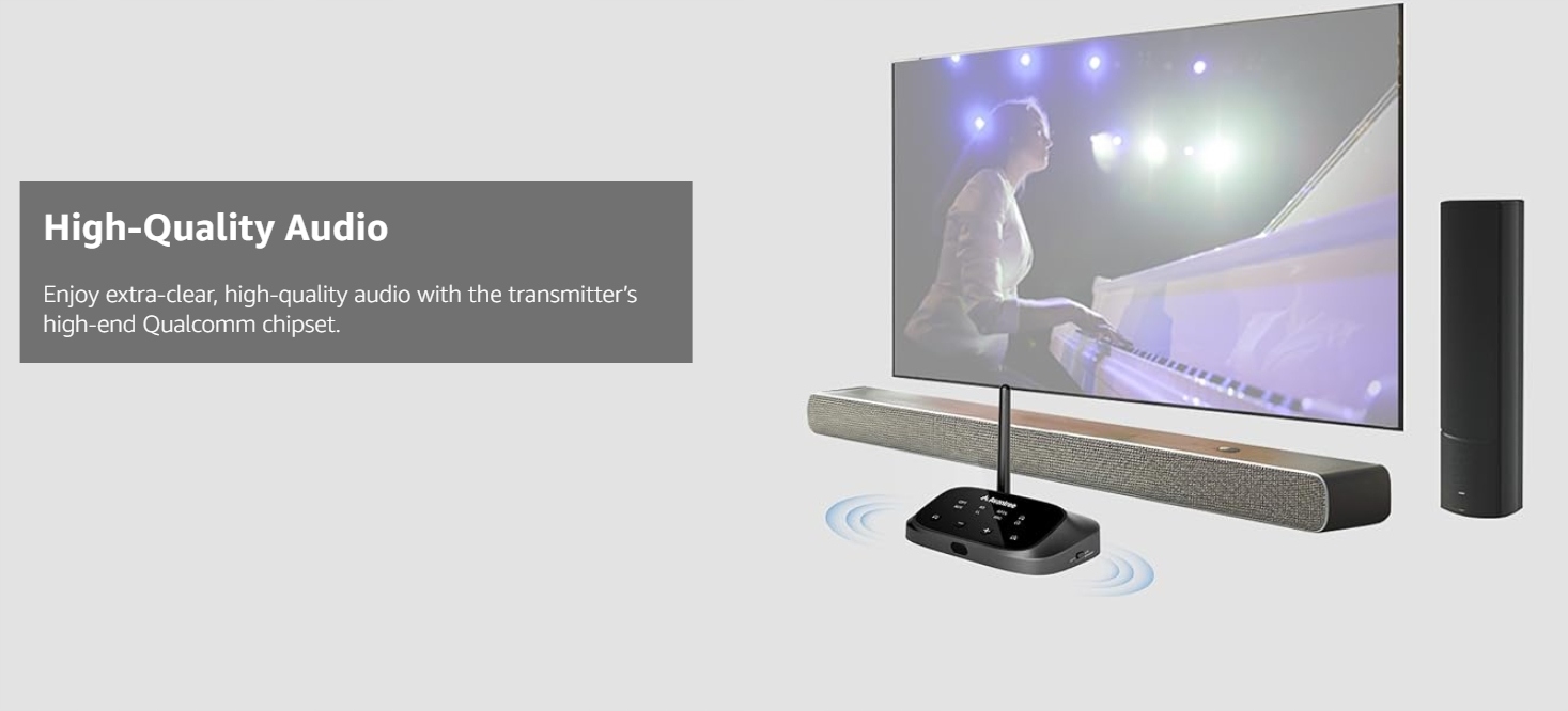 Avantree Oasis плюс 2 [версия 2025] - Bluetooth 5.3 Передатчик для телевизора