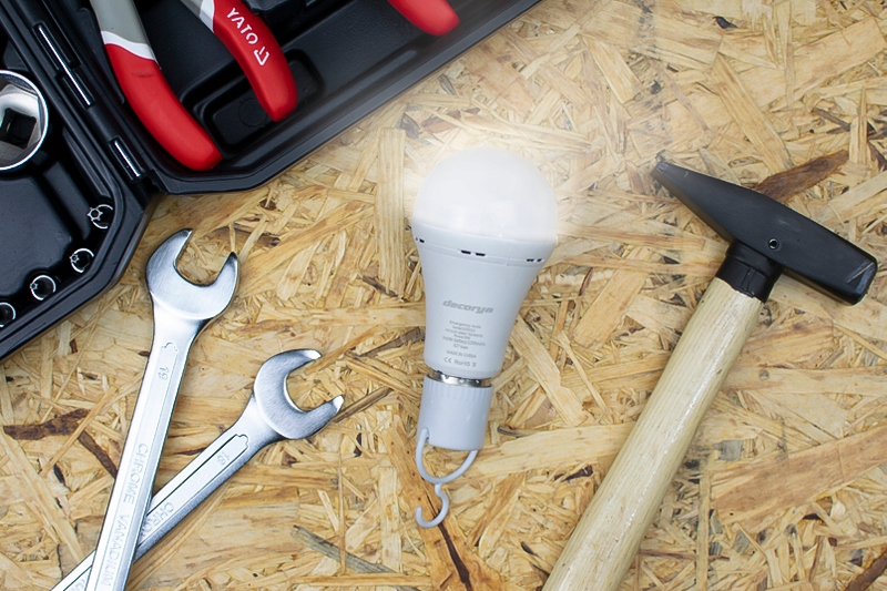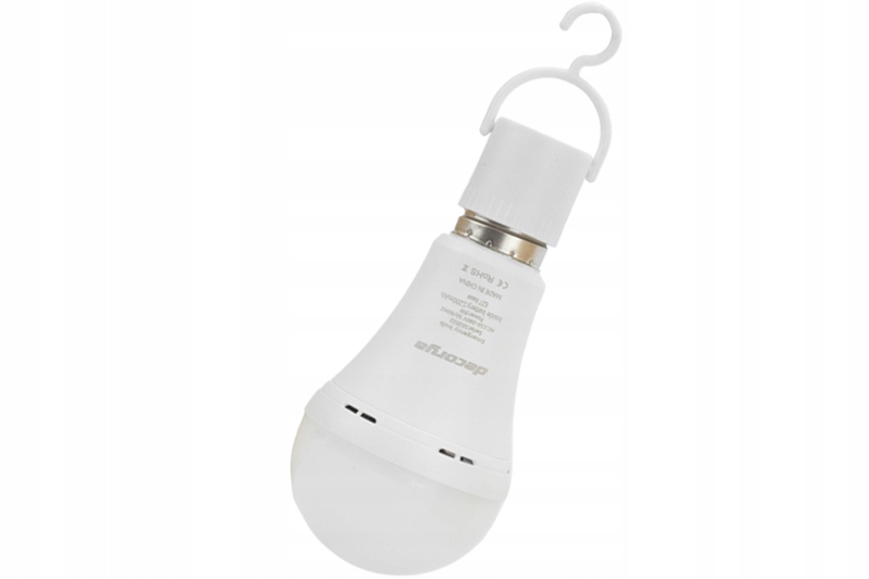 Аварийная лампочка Decorya поставляется с колпачком с ручкой и крючком. Это позволяет использовать лампочку совершенно без проводов, в любом месте, даже вне дома. Крючок позволит вам повесить его в подвале, гараже, палатке или во время рыбалки с друзьями или на барбекю с семьей.