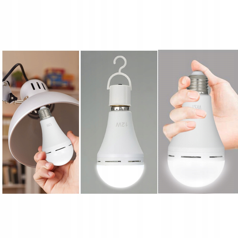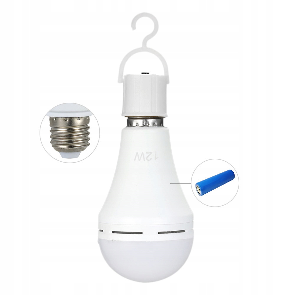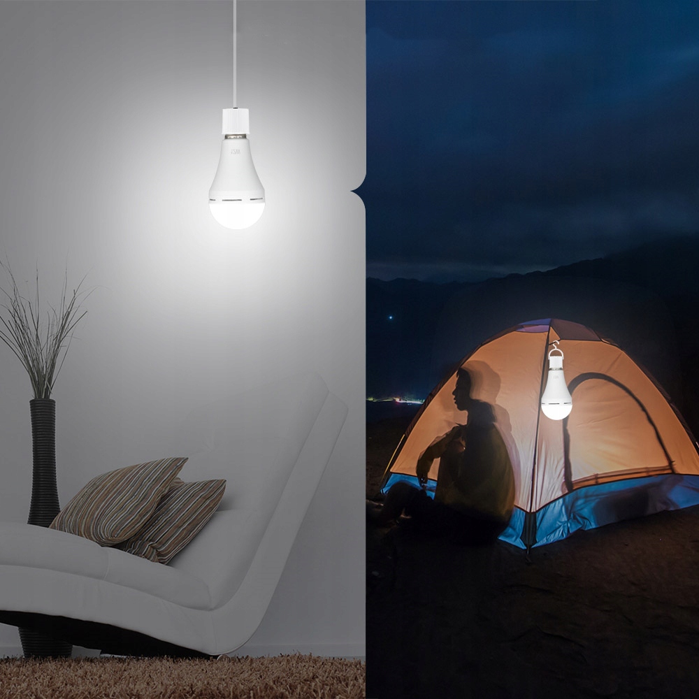 Перезаряжаемая LED лампа, которая работает как обычная светодиодная лампа, в случае сбоя питания ее можно вынуть из розетки и использовать в качестве аварийного освещения, так что вы никогда не останетесь без внимания во тьме. Кроме того, вы можете повесить его, идеально подходит для кемпинга, сада, вечеринки и т. д.