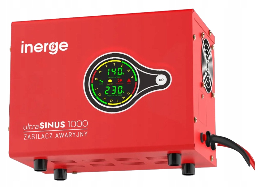 Источники аварийного питания INERGE ultraSINUS оснащены прозрачным ЖК-дисплей, который будет отображать текущий рабочий статус устройства. На дисплее вы можете проверить, среди прочего: входное напряжение, выходное напряжение и частота. Кроме того, вы можете быстро проверить уровень нагрузки и уровень заряда батареи.