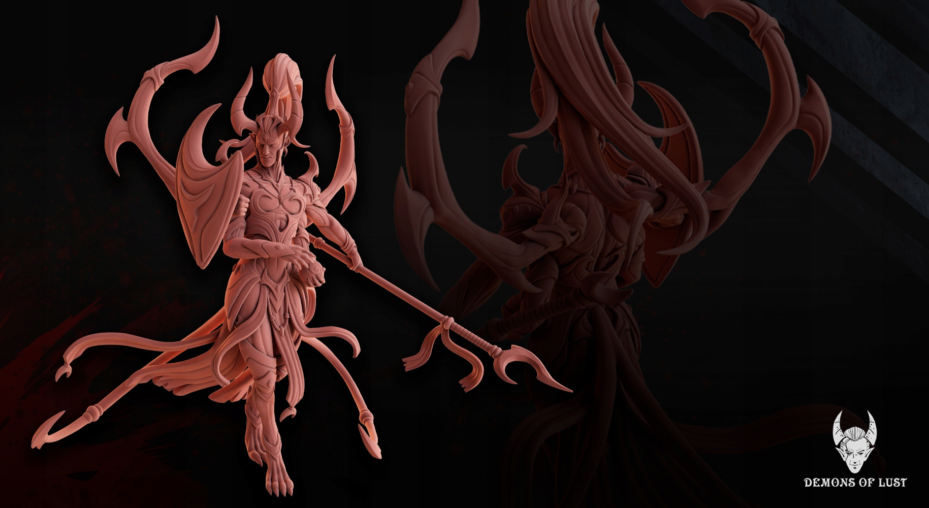 Модель копья БЕЗ ПОДСТАВКИ Аватар Похоти для использования в боевых играх и ролевых играх в качестве эпического демонического противника богов похоти и излишеств, таких как Слаанеш, во вселенной Warhammer 40k и Age of Sigmar.