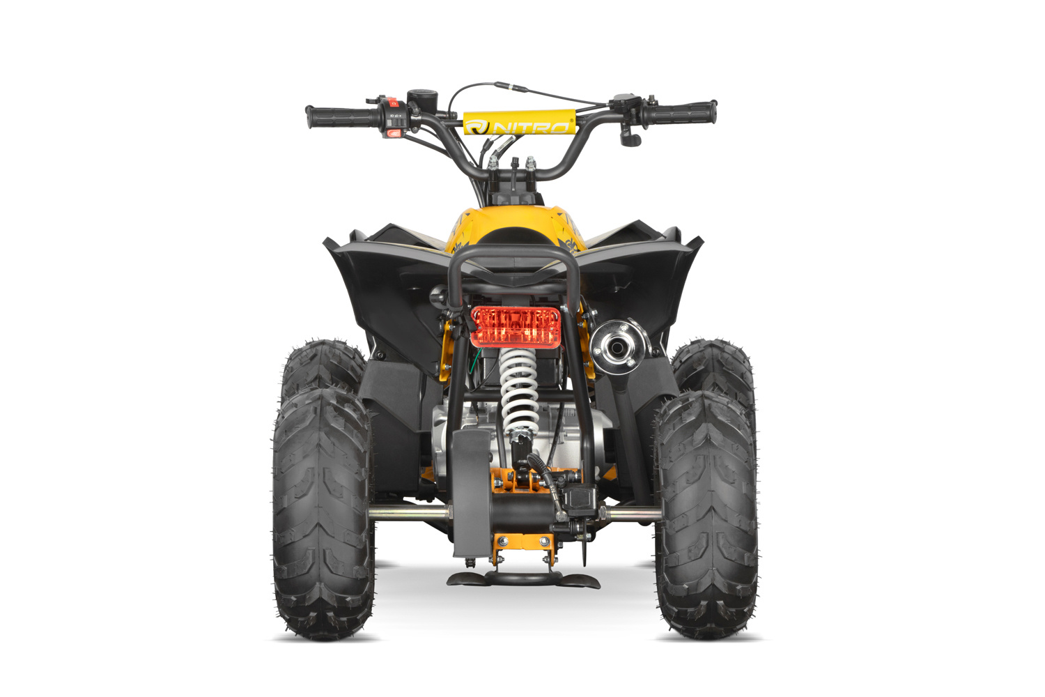 Quads 125 и 150 рекомендуется для детей старшего возраста. Они оснащены четырехтактным двигателем внутреннего сгорания, автоматической или полуавтоматической коробкой передач, каждый квадроцикл имеет обратную передачу. Комфорт езды отвечает за переднюю и заднюю подвеску, и безопасность будет обеспечена: максимальная скоростная блокировка, безопасная верхняя часть, цепная крышка, гидравлические передние и задние тормоза, дистанционный пилот.