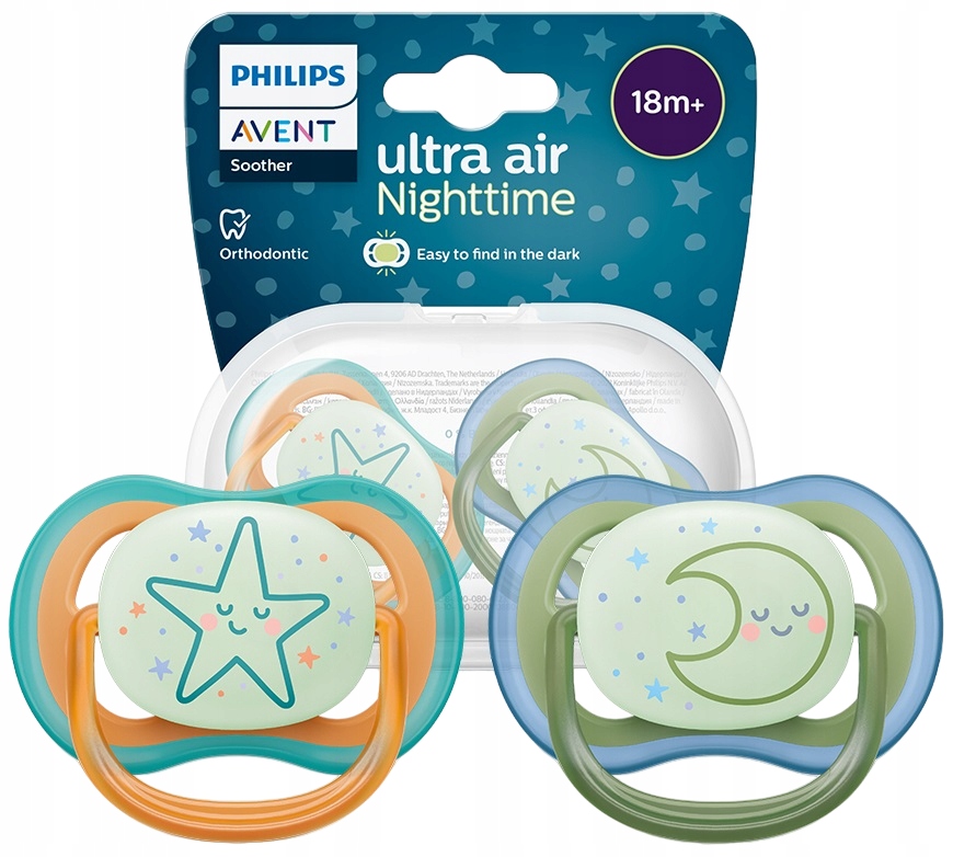 AVENT 2 SMOCZKI ULTRA AIR NOCNE ŚWIECĄCE W CIEMNOŚCI 18M+ SZTYWNE + ETUI