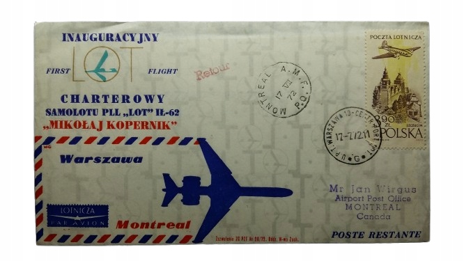 Aviation Mail - Mikołaj Kopernik - Warsaw - Montreal E2226