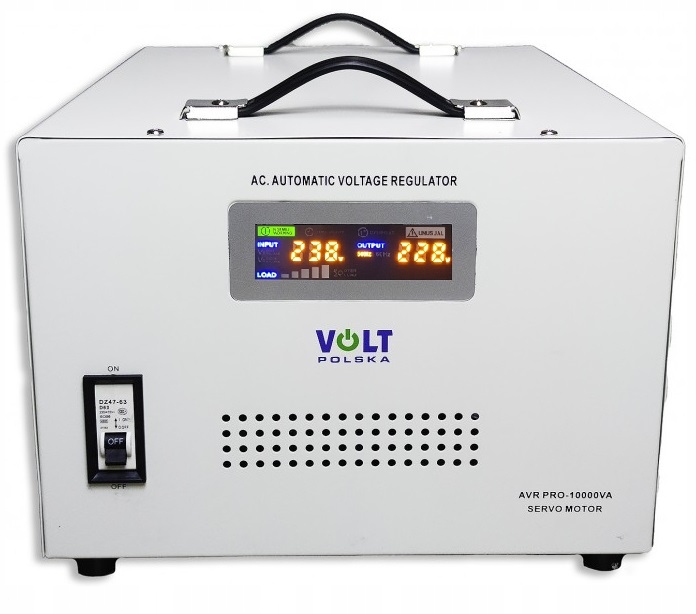 Примечание: это версия PRO 3% стабилизатор с серводвигателем, а это значит, что колебания выходного напряжения будут в пределах 230+-7В, т.е. мы получим выходные напряжения в диапазоне 223-237 В для питания наших приемников, что должно защитить нас от слишком высокого напряжения от электросети, чаще всего из-за фотоэлектрических систем.