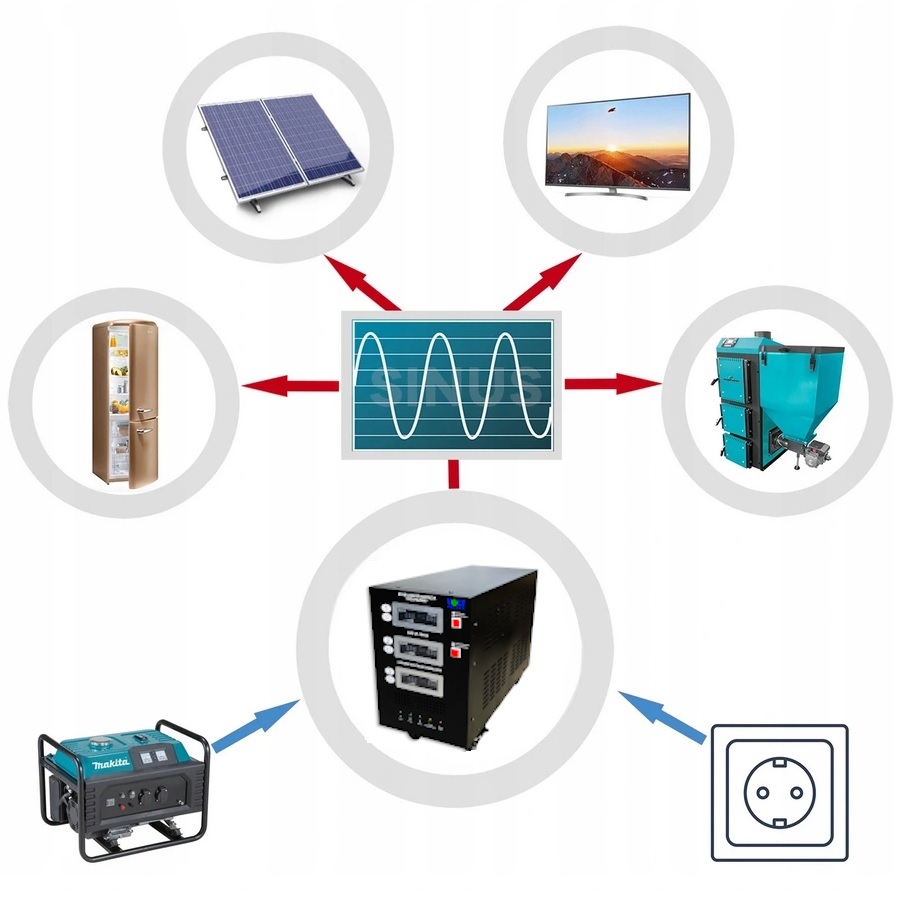 Продукт не изменяет форму напряжения, если источник питания является чисто синусоидальным сигналом, он будет обрабатываться в той же форме. Благодаря этому решению, стабилизатор совместим, среди прочих С: холодильники, телевизоры, лампы, компьютеры и многие другие устройства