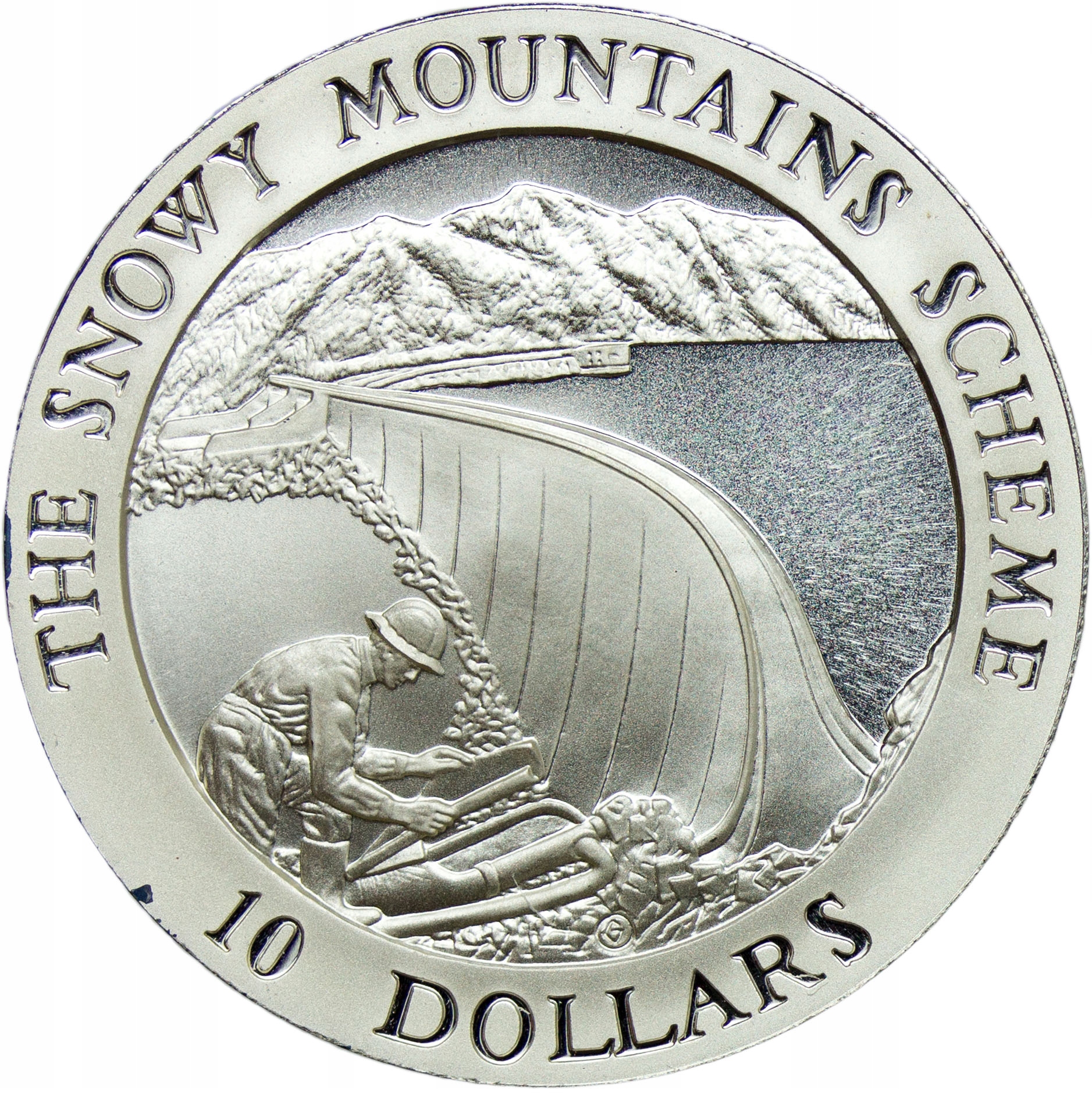 Австралия, 10 долларов США, 1999 г., Схема «Снежные горы», плотина