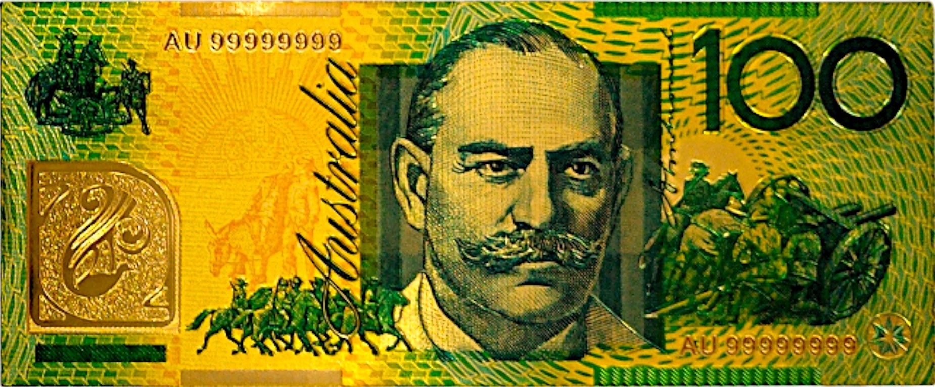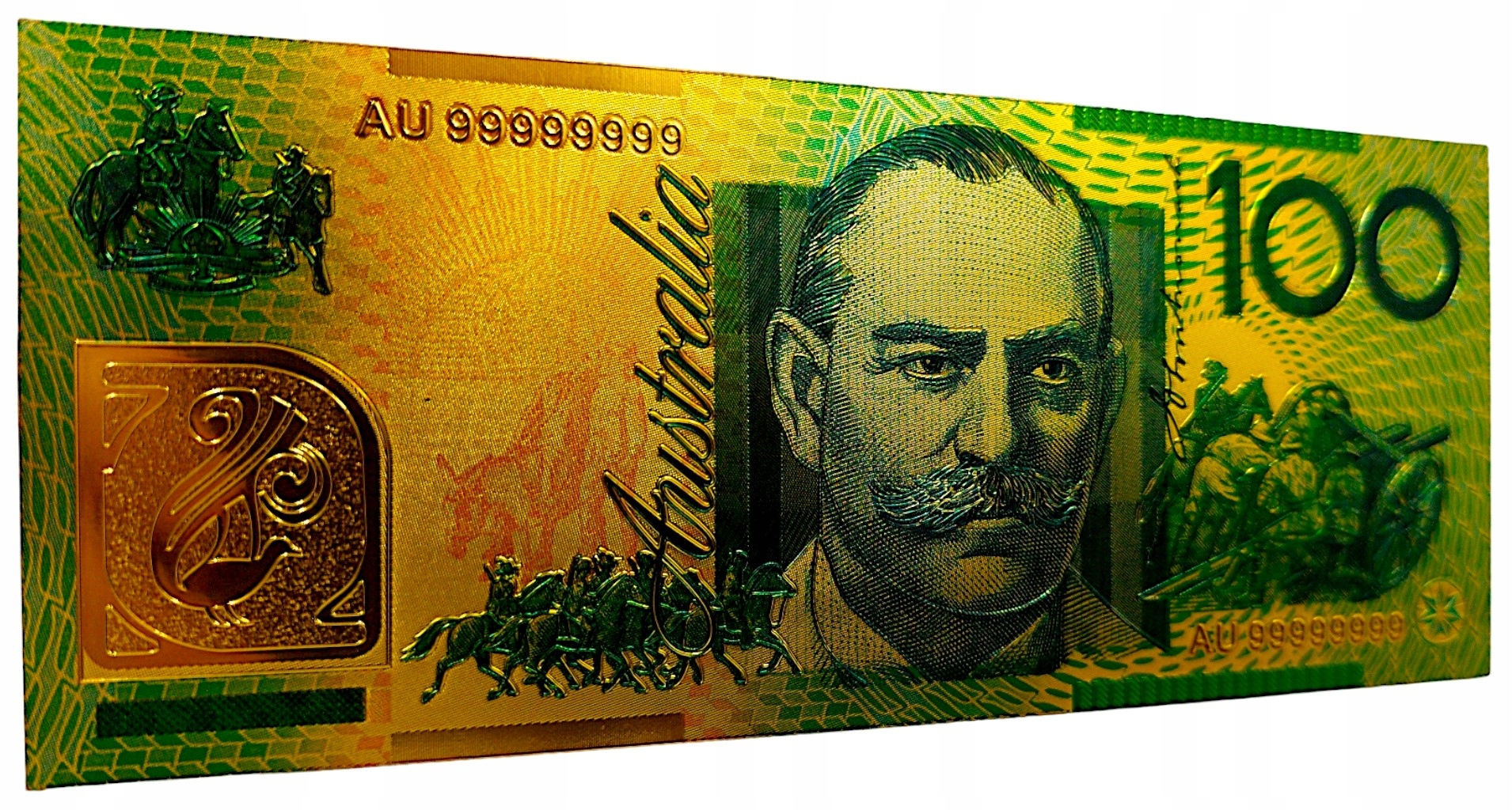 АВСТРАЛІЯ 100 доларів ДЖОН МОНАШ Колекційна позолочена банкнота
